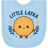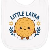 Celebrate Hanukkah with this adorable 'Little Latka' Newborn Bib. Featuring a smiling latke with cheerful accents, it's perfect for adding a festive touch to your holiday attire.