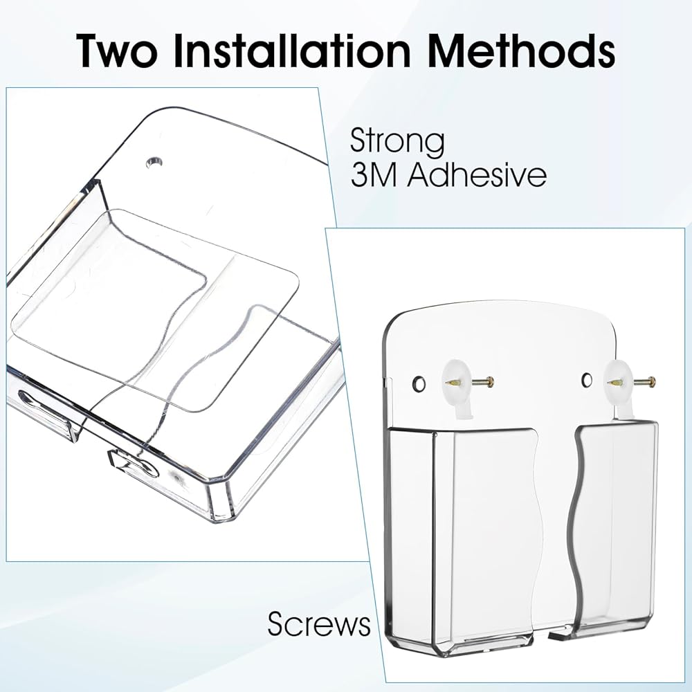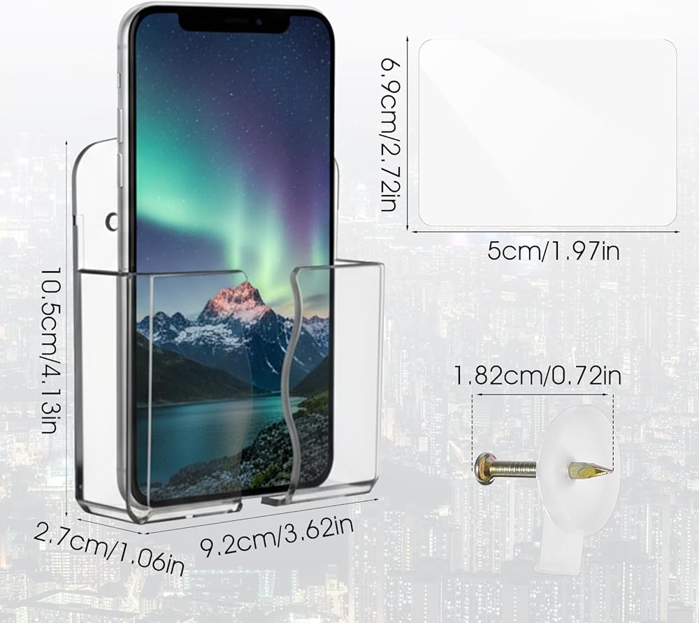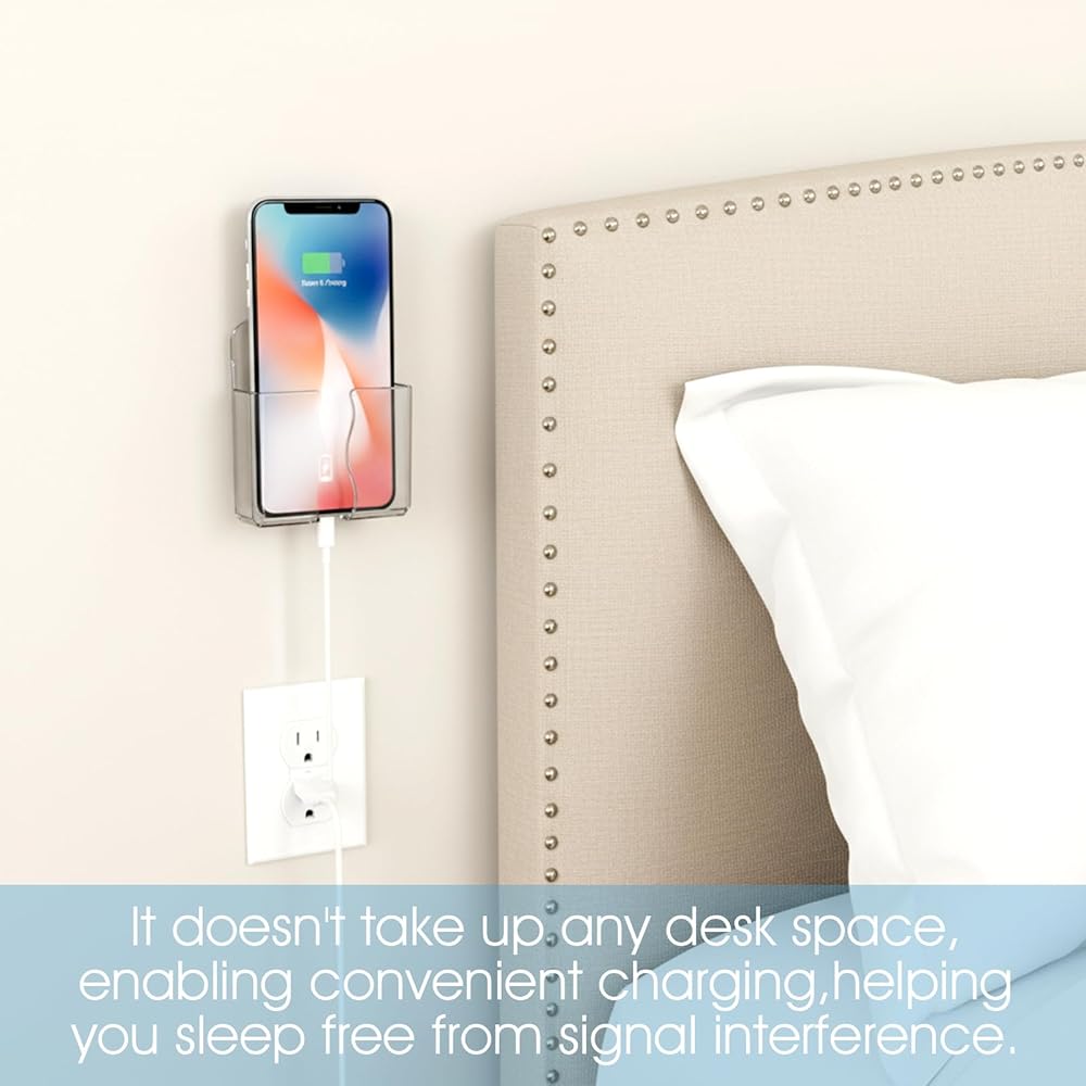 Space Optimization Design: The compact and minimalist transparent design maximizes space efficiency in any environment. This phone organizer eliminates clutter by providing a dedicated storage solution for smartphones and charging cables, particularly useful in bedrooms, offices, and cars where space is limited. The wall mounted configuration keeps surfaces clear while maintaining easy access to your device