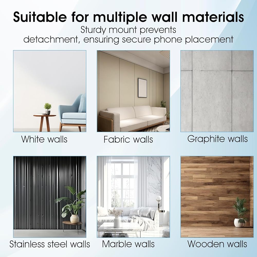 Dual Installation Options: This wall mounted phone stand offers two reliable mounting methods: strong transparent adhesive tapes and durable nails for permanent fixation. The 6.9x5 cm adhesive pads provide bonding strength on smooth surfaces, while the included 1.82 cm nails ensure secure installation on various wall types, giving users flexibility based on their specific mounting requirements and surface conditions