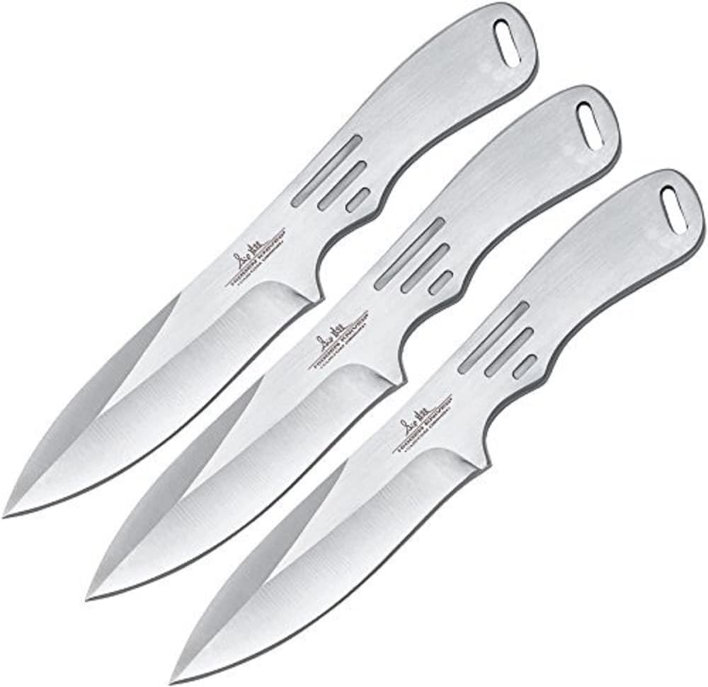 مجموعة سكاكين الرمي الثلاثية الكبيرة من جيل هيبين | 1/8 بوصة من الفولاذ المقاوم للصدأ السميك | 8 5/8 بوصة بشكل عام | يتضمن غلافًا من النايلون عالي التحمل