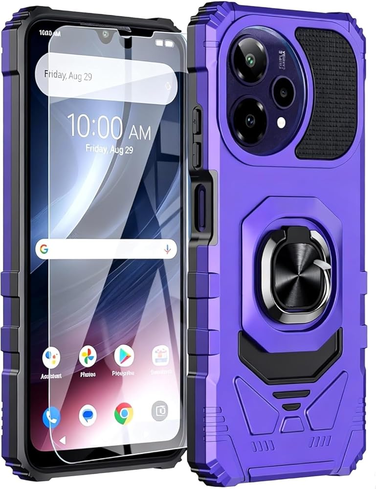 حافظة هاتف Cricket iCon Pro 2026/At&t Motivate Pro 2 5G حافظة هاتف مع واقي شاشة، حامل حلقي مغناطيسي + ظهر متجمد من البولي كربونات + ممتص الصدمات من السيليكون الناعم متين + زاوية عسكرية مقاومة للصدمات أرجواني