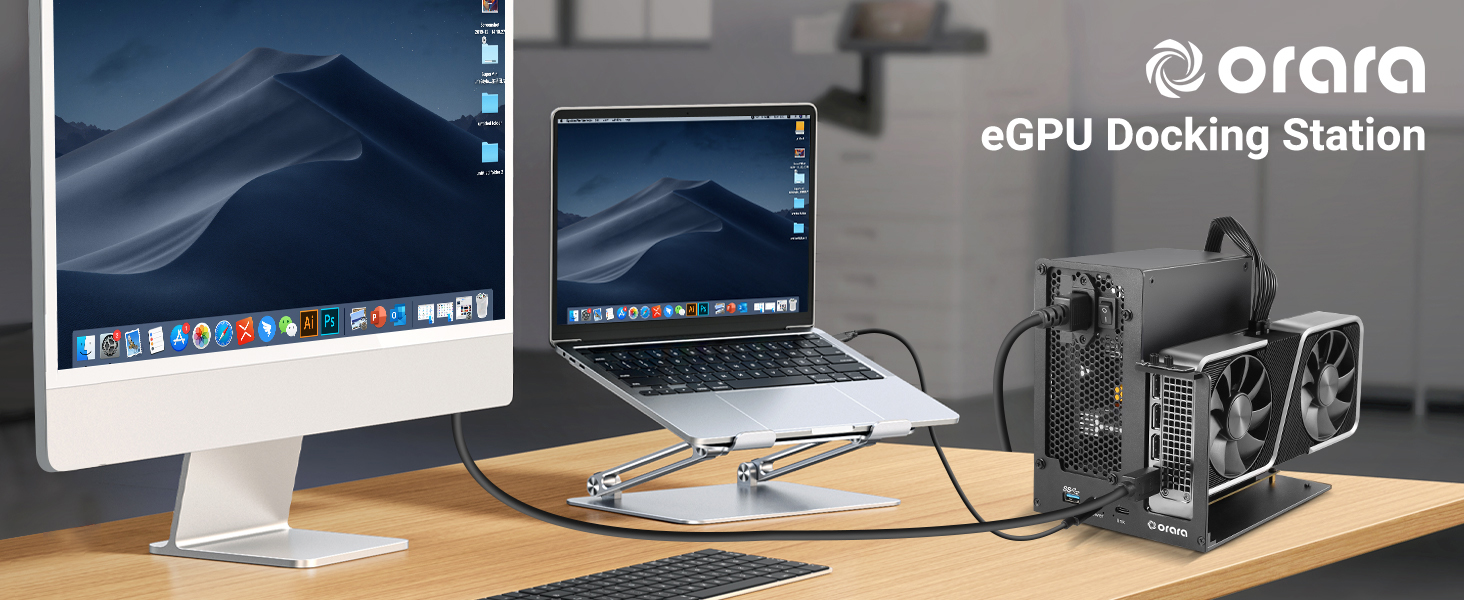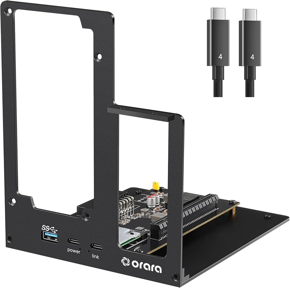 محطة إرساء eGPU الخارجية من ORARA، حاوية eGPU متوافقة مع قاعدة بطاقات الرسومات Thunderbolt 3/4/USB4 بسرعة 40 جيجابت في الثانية المتوافقة مع NVIDIA/AMD PCIe، PD 85W، سلسلة Daisy، دعم إمداد الطاقة ATX (أسود)
