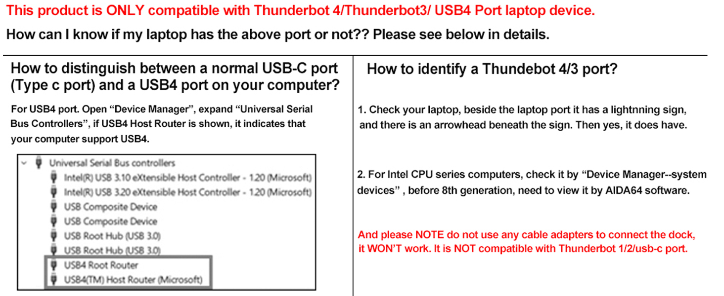 ملاحظة مهمة: يرجى التأكد من أن الكمبيوتر المحمول أو جهازك يحتوي على منفذ TB4/TB3/USB 4، وإلا فلن يمكن استخدامه.