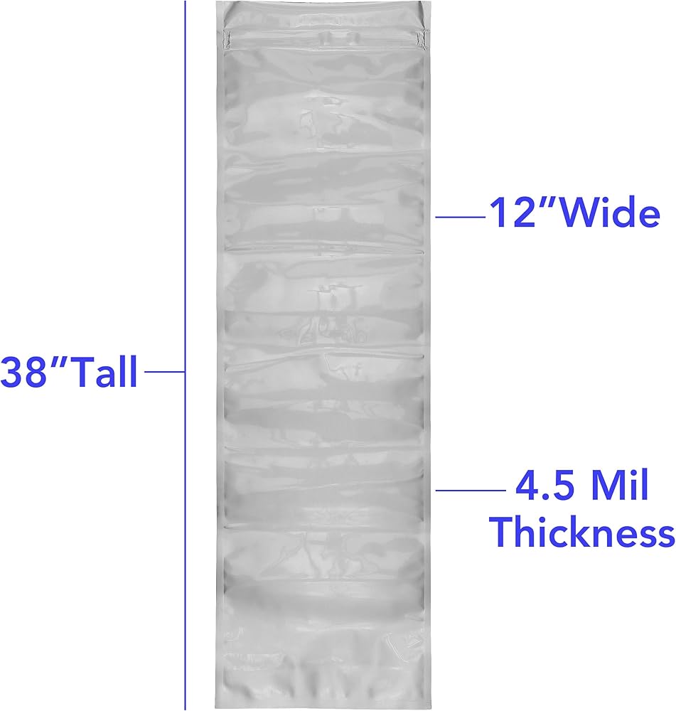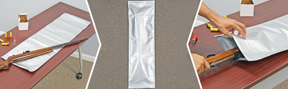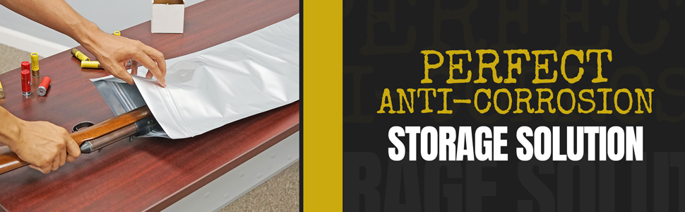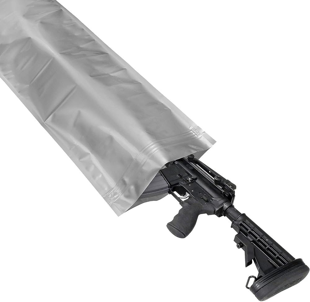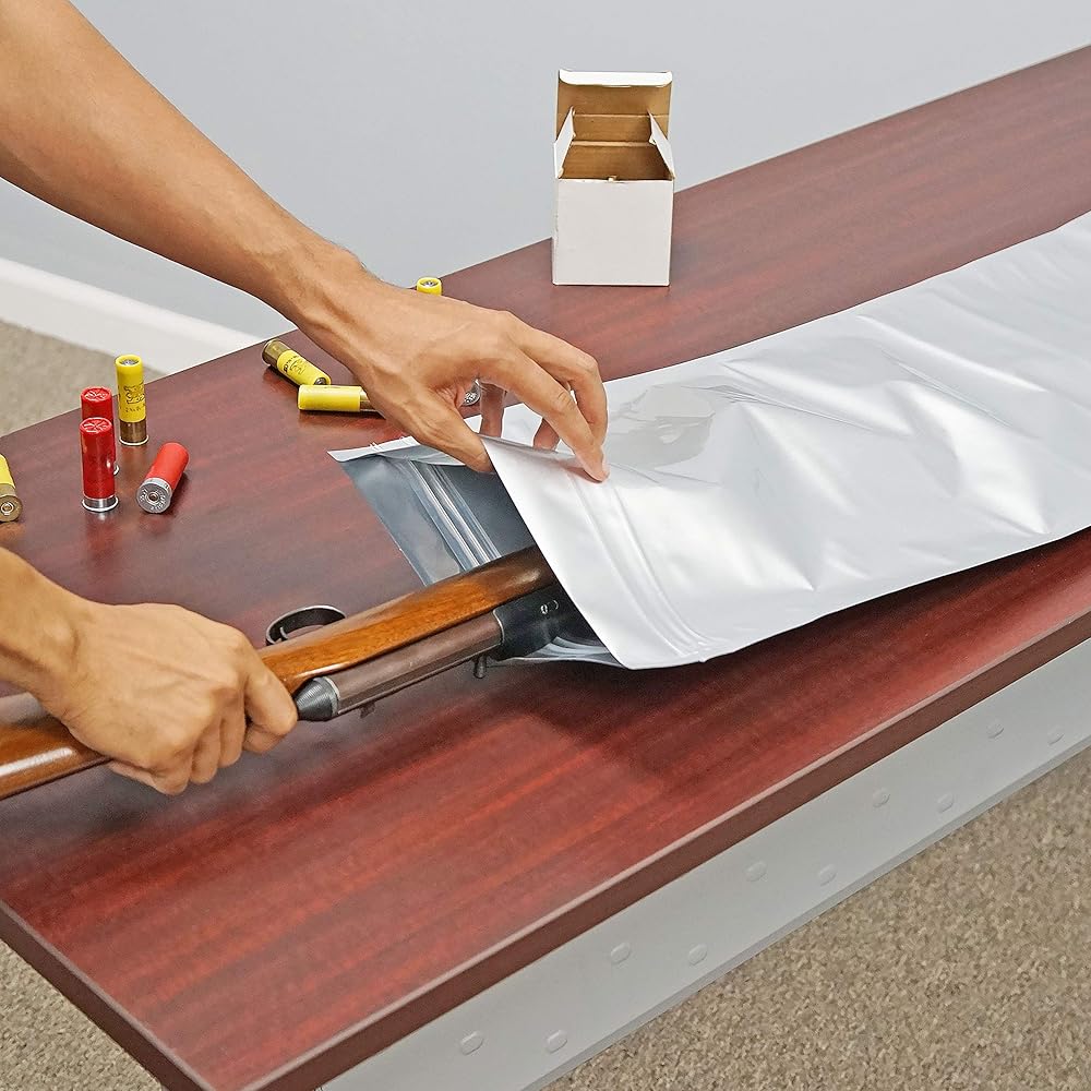 The Dry Packs Universal Shotgun/Rifle Bag was designed to protect rifles and shotguns from corrosion and general contamination. Depending on a firearm's overall height, optics may remain mounted. As always, optics should be stored with caps on. These Universal Shotgun/Rifle Bags are one of the most convenient methods of storage and preservation solutions for firearms such as the Mosin Nagant, M1 Garand, Remington 870, Mossberg 500, Ruger 10/22, or the Remington 700. Zipper Series firearm storage bags work well for firearms that are rarely or even frequently used due to the easy closure system. Depending on use, firearms can be stored rust free for 5+ years. To use a zipper series firearm bag effectively first clean your firearm, as recommended by the manufacturer, and slide it into the bag. Next simply press the heavy duty zipper closure shut. To remove the firearm simply open the zipper closure and remove your firearm. This bag can be vacuum sealed with industrial vacuum seal machine or use Oxy-Sorb Oxygen Absorbers inside bag to absorb oxygen and fight corrosion. Sold Individually. Gun not included.