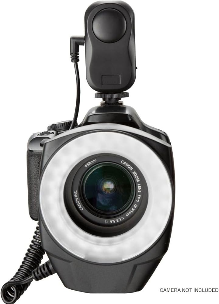 Ring Light / Flashes are now more popular than ever for portrait and close-up photography. Initially used by dentists & practitioners they are now available for the average layman or laywoman to help illluminate close-up images or instill colorful and dreamy effects. Another feature they have is their ability to have continuous light for any application in photography or video. The light intensity can also be adjusted. The MR48 series features a very bright & clear LCD display, High luminocity and low static power consumption. Functions as a photography light as well as a flash with the flick of a switch. For flash photography camera must be set to manual exposure while commander sits on shoe. Left and Right flash functions make objects appear 3 dimensional, 7 (Seven) luminance levels for any photography application, 4 (four) colored diffusers (Oyster white, Blue, Orange, transparent). Includes Light, Instructions & Warranty papers, Lens Adapters/Rings (If Necessary)