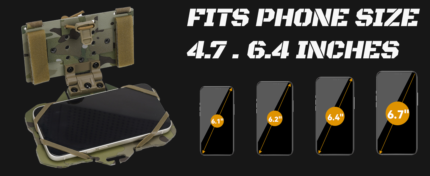 حامل هاتف تكتيكي MOLLE لملحقات حامل اللوحة - يناسب الهواتف الذكية مقاس 4.7 بوصة - 6.4 بوصة - حامل آمن على الصدر للصيد والعتاد التكتيكي، تصميم متوافق مع الكاميرا باللون الأسود