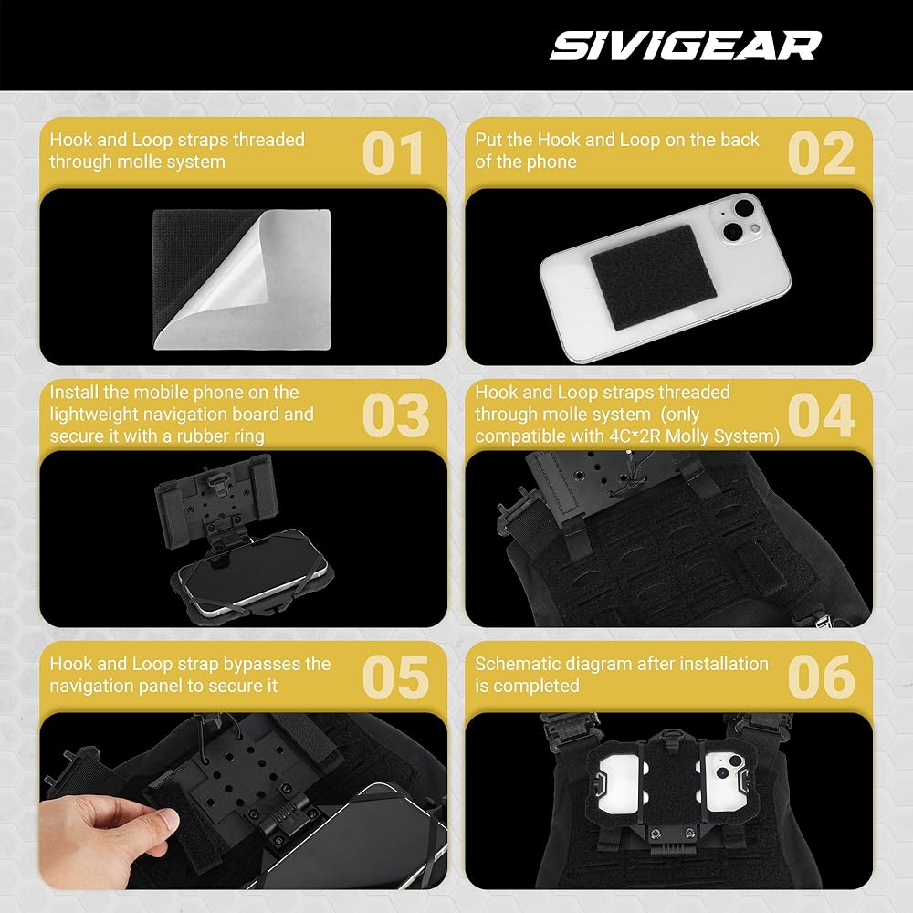 • حامل هاتف آمن وتكتيكي لسترات حامل اللوحة: يحافظ حامل الهاتف التكتيكي MOLLE على أمان هاتفك أثناء الصيد أو المشي لمسافات طويلة أو المهام التكتيكية. مصنوع من قماش Cordura 622P وخطاف وحلقة من الدرجة A، ويتم ربطه بقوة بالسترات الحاملة للألواح أو المعدات التكتيكية أو حزام MOLLE. يتميز بـ 4 إعدادات ارتفاع قابلة للتعديل وحزام غير قابل للانزلاق لمنع السقوط. يتضمن شريطين إضافيين معززين للاستخدام طويل الأمد. (يناسب الهواتف مقاس 4.7 بوصة - 6.4 بوصة، ولكن الهواتف مقاس 6.4 بوصة ذات الجرابات السميكة قد لا تناسبها)