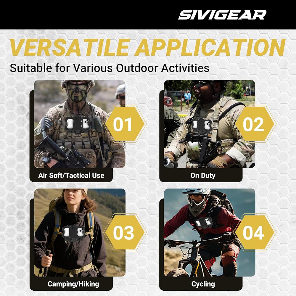 • مرفق سريع MOLLE وملاءمة قابلة للتعديل: قم بتوصيل حامل الهاتف التكتيكي هذا بأي شبكة MOLLE 4x3 (السترات وحقائب الظهر والأحزمة) في ثوانٍ. تسمح آلية الانزلاق والقفل بإجراء تعديلات فورية دون إزالة هاتفك. تعمل مع حقائب المسدس وأدوات الصدر وأحزمة المعركة