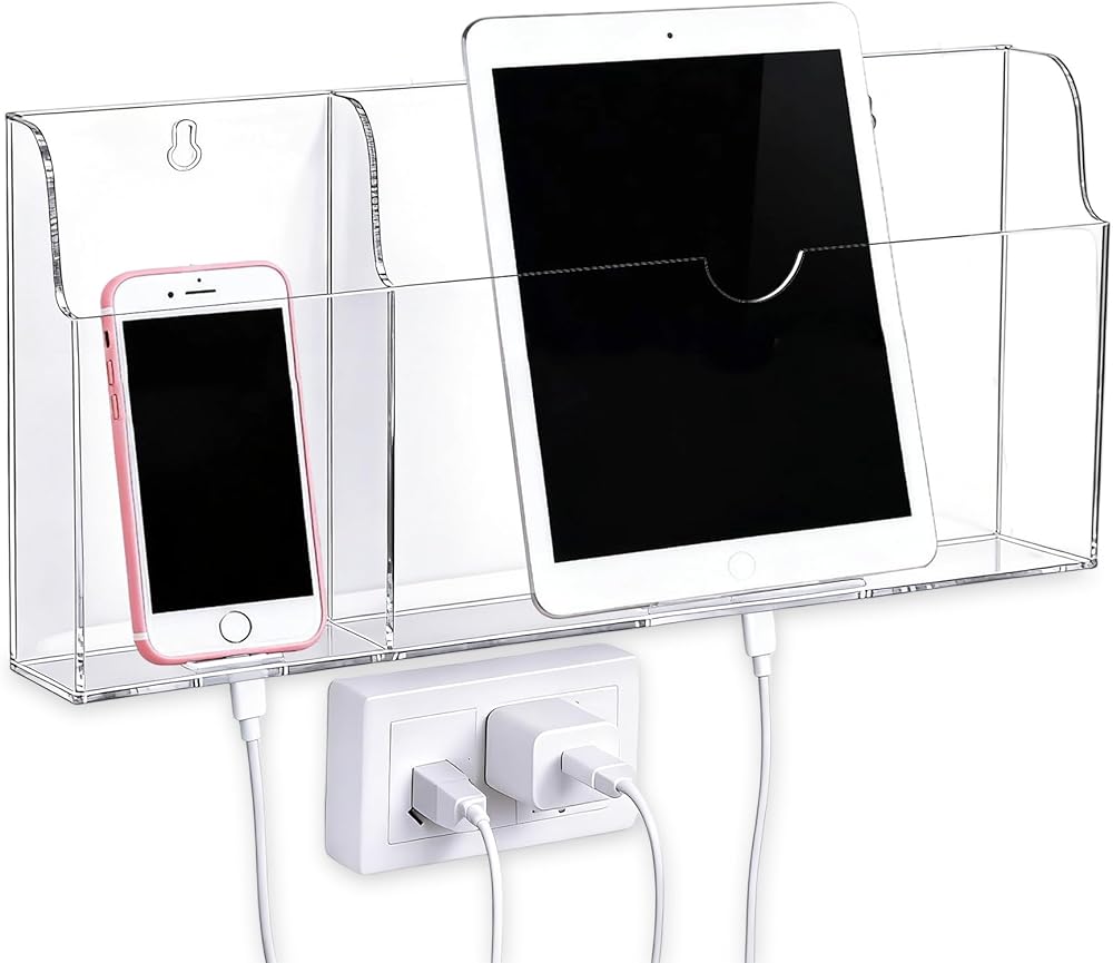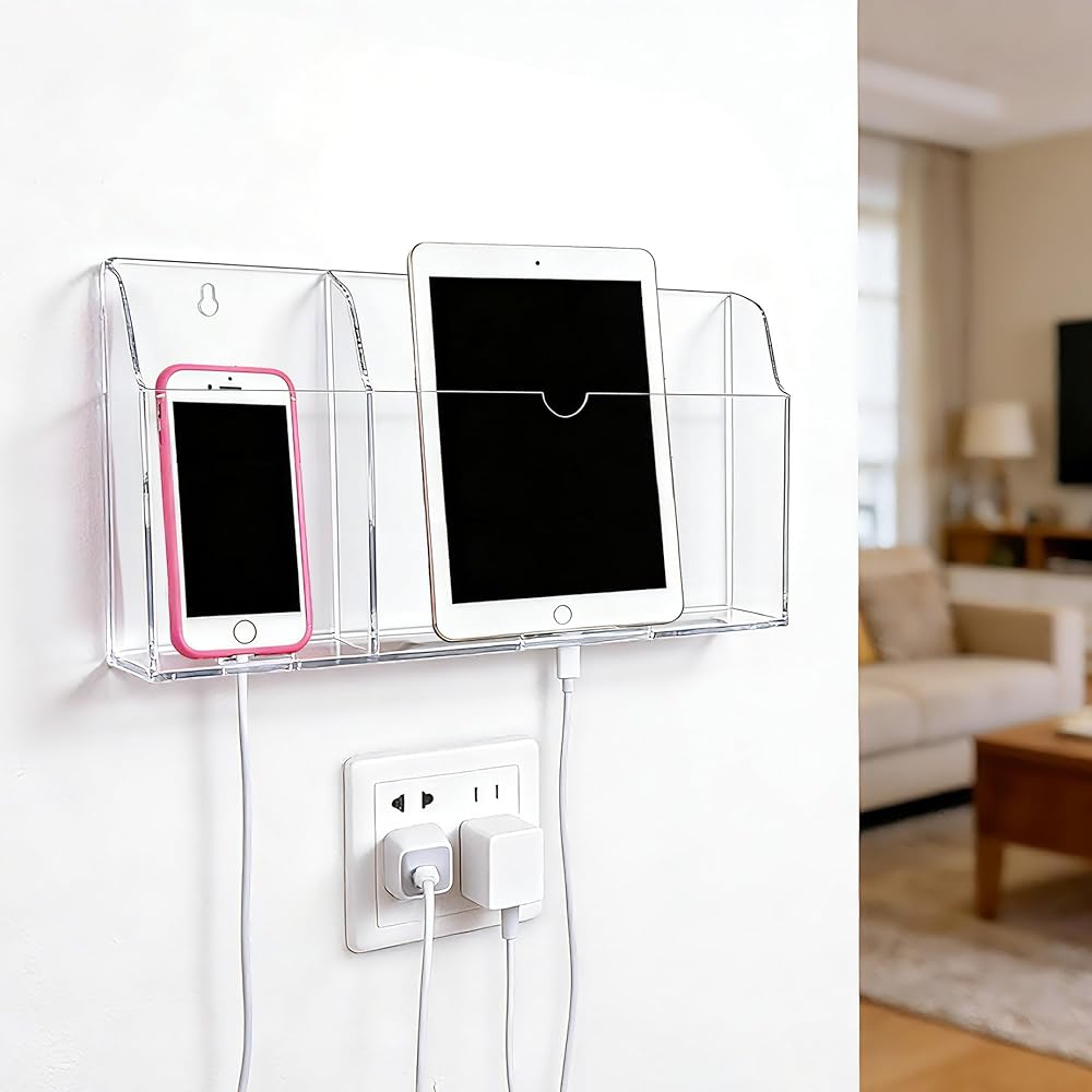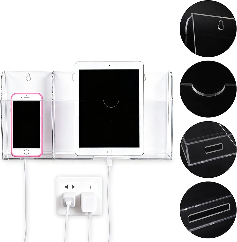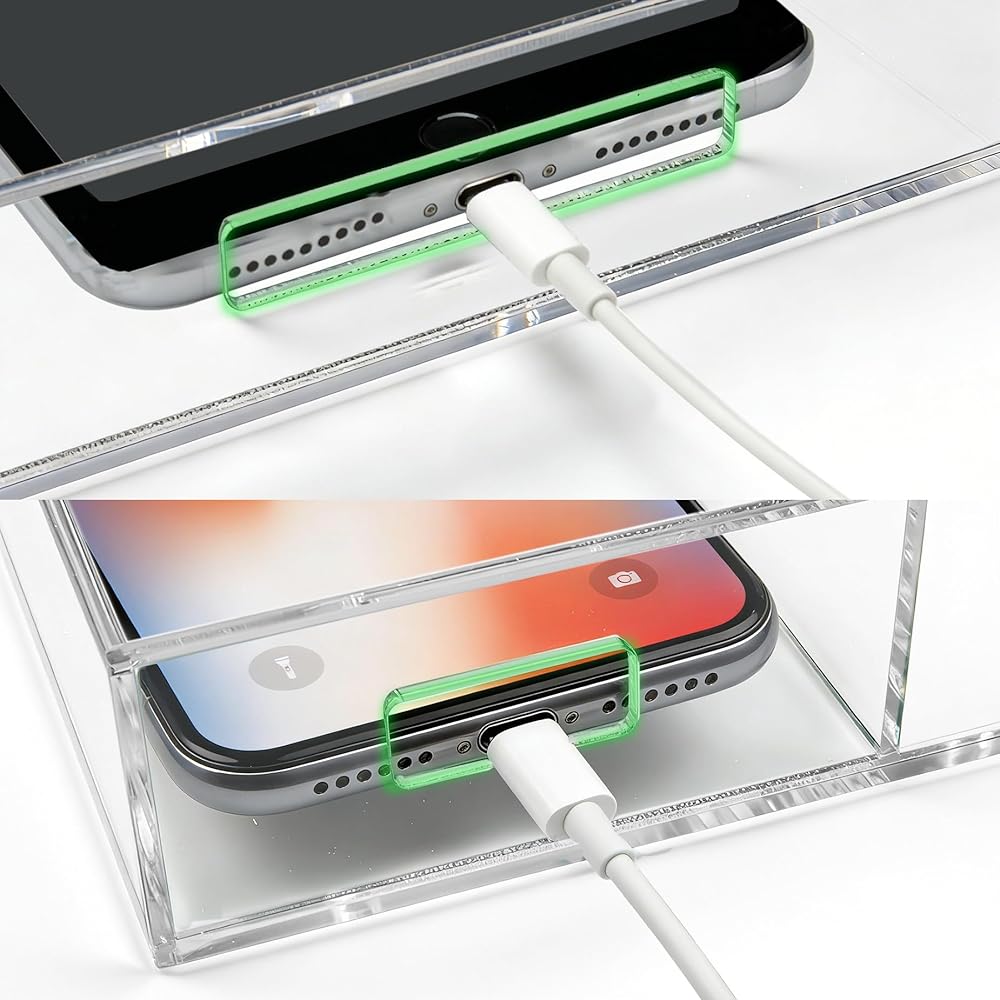 Premium Material: Crafted from high-quality acrylic, this wall mounted phone holder is built to last while offering a clear view of your device's charging status without any hassle.