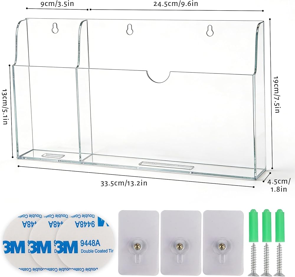 Versatile Organizer: Featuring a large slots (9.6×1.8×7.5 inches) and a small slots (3.5×1.8×7.5 inches), this ipad wall mount can be wall mounted or placed on desks, ideal for most tablets and phones, and more as a wall remote control holder.