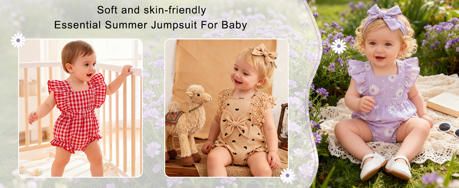 🎈رومبير للفتيات الصغيرات مع إغلاق سفلي مريح: تغيير الحفاضات بسهولة، مزيج مثالي من العملية والأناقة. تتميز عصابة الرأس بتصميم حزام قابل للتعديل، والذي يتكيف بسهولة مع محيطات الرأس المختلفة.