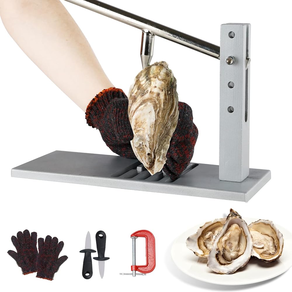 مجموعة أدوات اويستر شوكر، آلة فتح الكبس المحار من الفولاذ المقاوم للصدأ بما في ذلك السكاكين، قفاز ومشبك جي، أداة عملية شديدة التحمل لبوفيه عائلة الفنادق