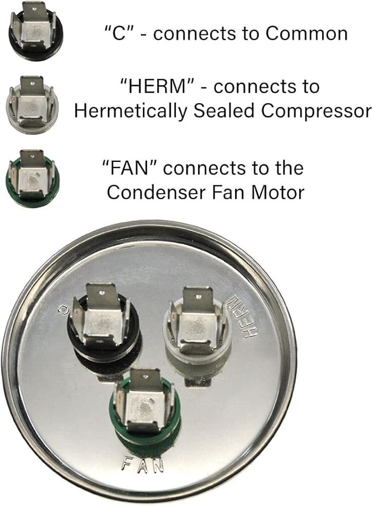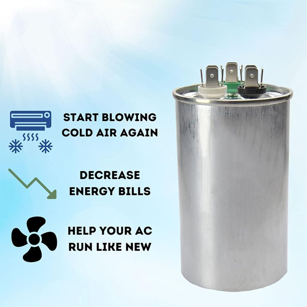 متعددة الوظائف: 35 + 5 MFD فولت مما يعني أنها ستعمل على 370 أو 440 فولت تيار متردد. مكثف التشغيل المزدوج، مثل هذا 30/5، يجمع مكثفين في وحدة واحدة. سوف يقوم بتشغيل محرك الضاغط ومحرك المروحة، وله ثلاثة أطراف في الأعلى. تم تسميتها بـ "Herm" لمحرك الضاغط، و"Fan" للمروحة، و"C" للخط المشترك.