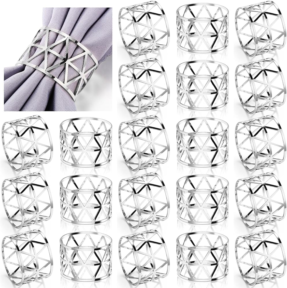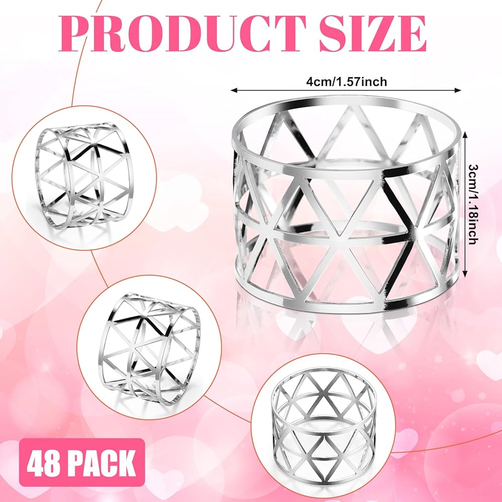 غنية بالكمية: سوف تحصل على 48 قطعة من خواتم المناديل الفضية، وهي كافية لتلبية احتياجات تزيين العطلات الخاصة بك، بالإضافة إلى أنها تتكيف أيضًا مع التصميم المجوف، والذي يلبي الاحتياجات الجمالية لمعظم الأشخاص، ويمكنك مشاركتها مع أفراد عائلتك