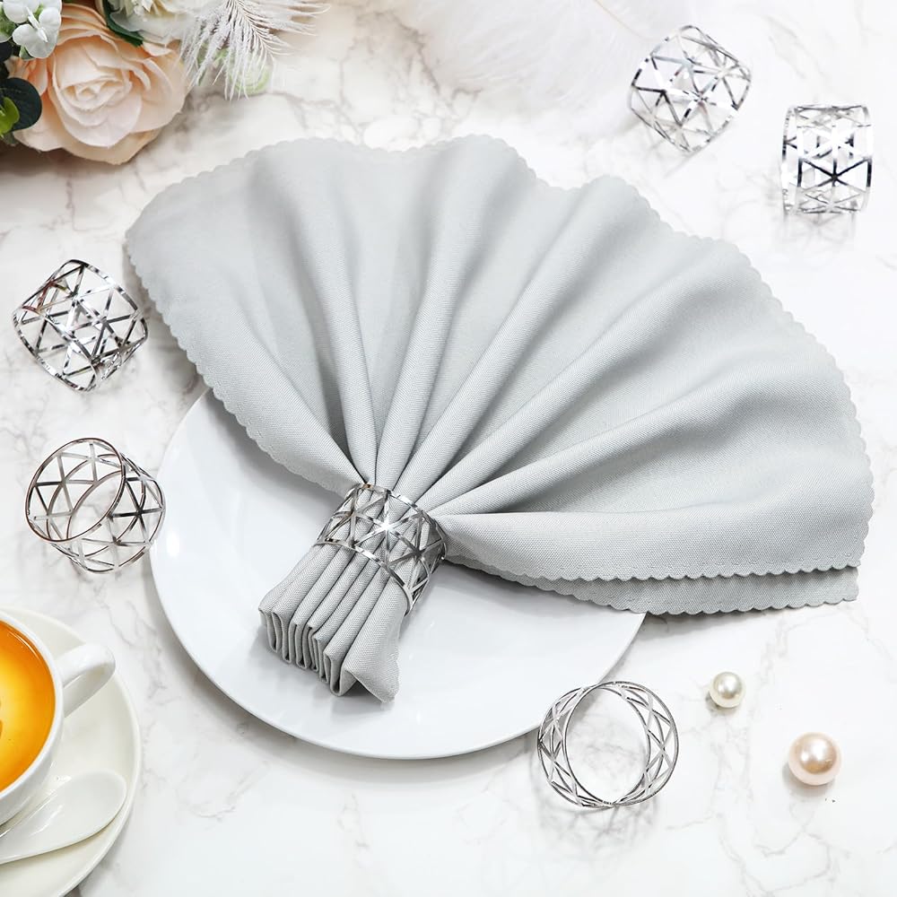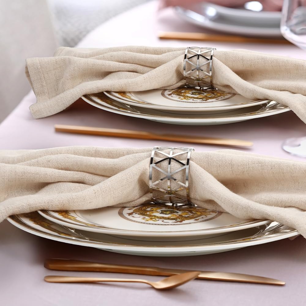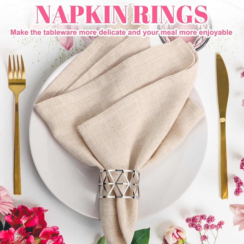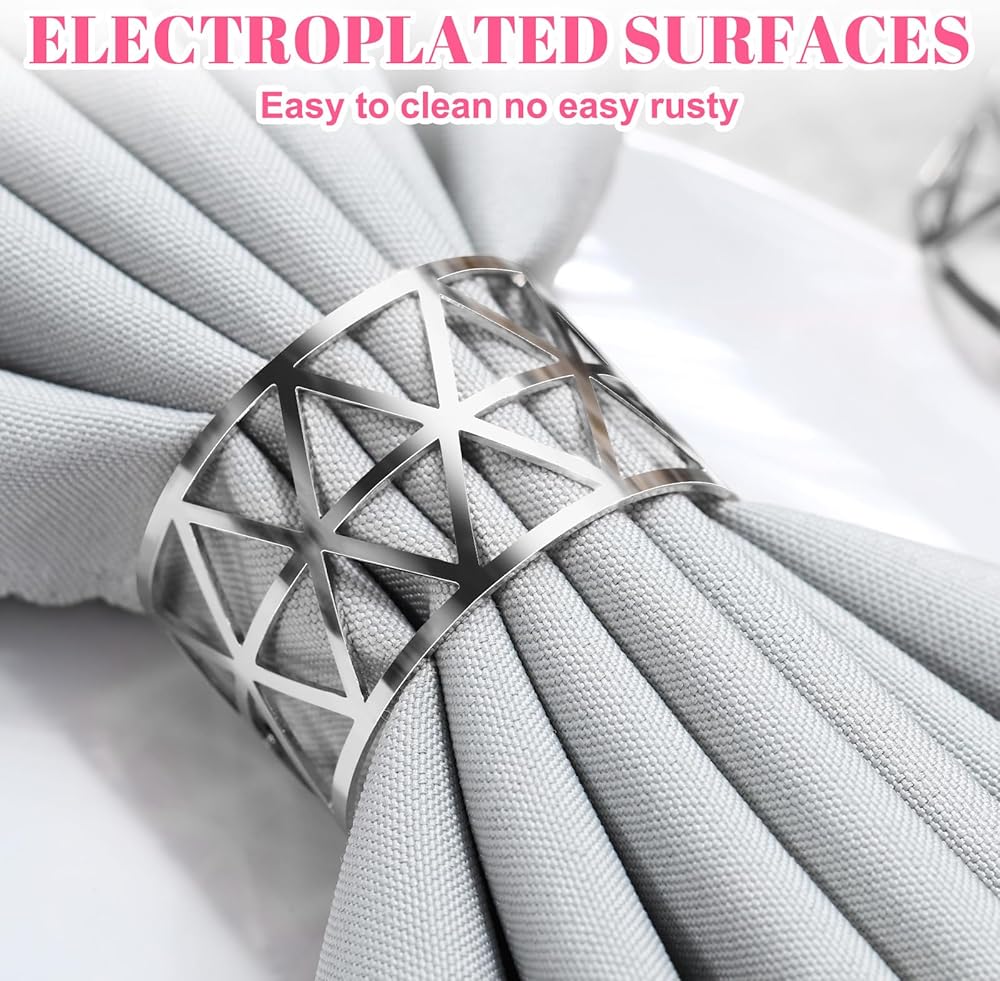 سيناريوهات استخدام متنوعة: مجموعة خواتم المناديل الفضية هذه مناسبة لتزيين طاولة الطعام، وتستخدم على نطاق واسع لحفلات الزفاف وحفلات أعياد الميلاد والذكرى السنوية والتجمعات العائلية والعديد من المناسبات الأخرى