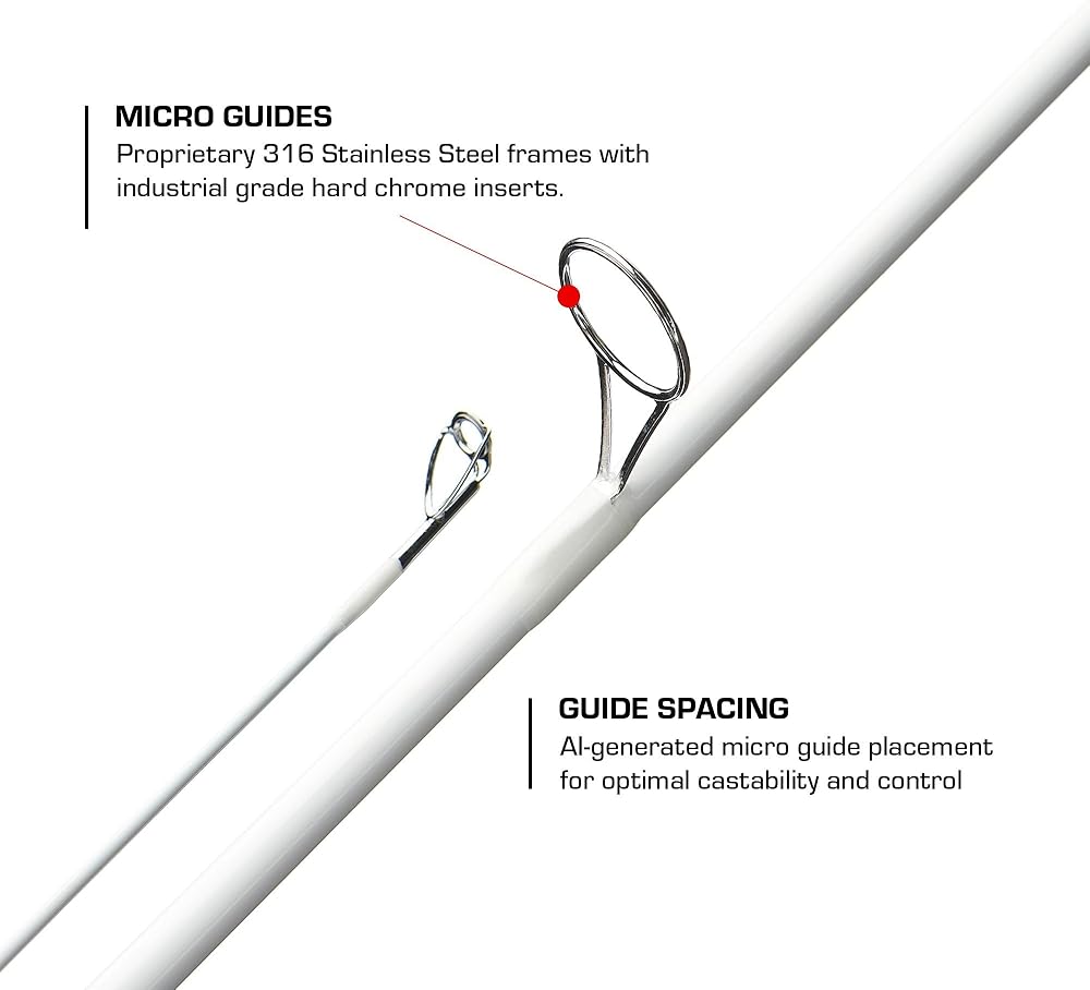 LIGHTWEIGHT & DURABLE ROD: Advanced Sensi-Touch blanks made from the highest quality multi-modulus pre-pegs create an extremely lightweight and durable rod. Each blank is also halo-sanded for increased strength and improved sensitivity. Definite separation of tip and backbone for enhanced performance, cast ability and control