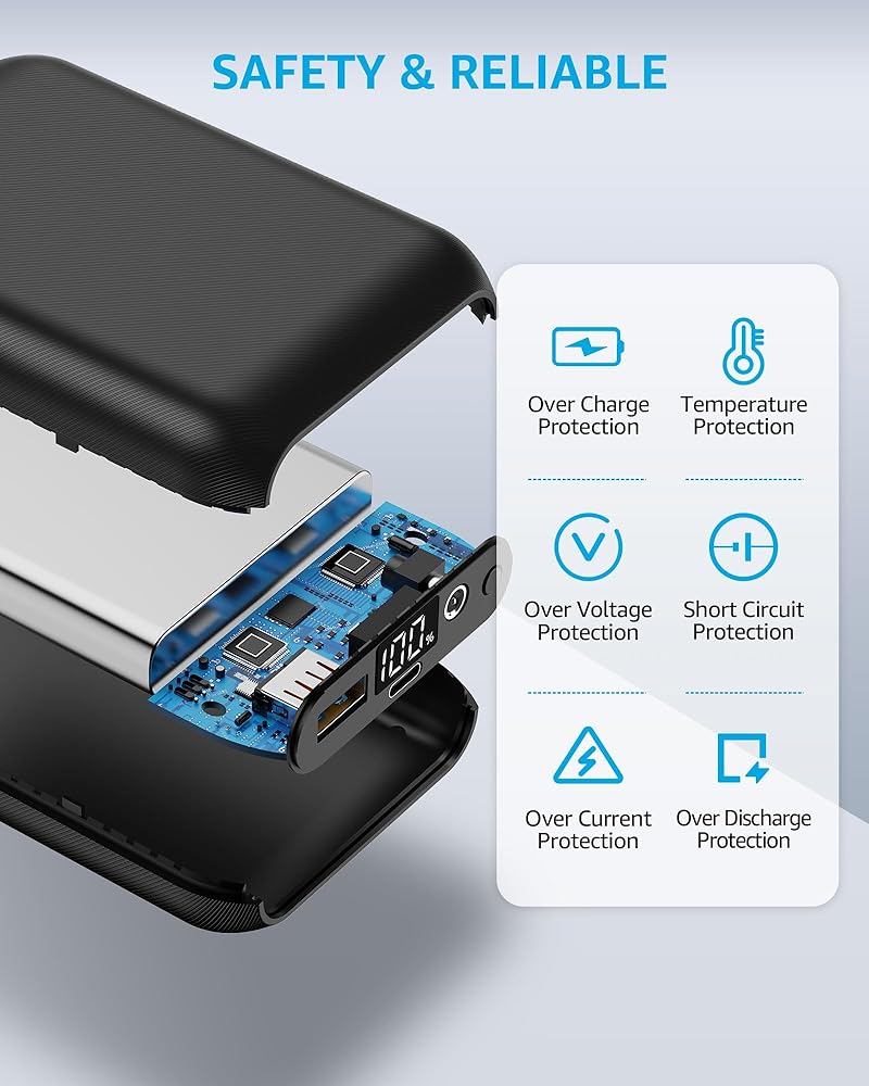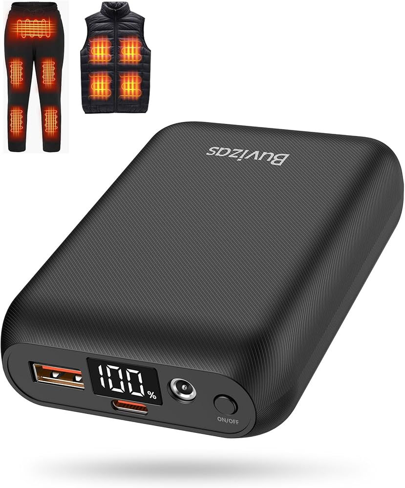 • سعة كبيرة وعمر بطارية طويل: يمكن لبطارية السترة الساخنة ذات السعة الكبيرة التي تبلغ 16,000 مللي أمبير في الساعة توفير تيار مستمر للسترة الساخنة لمدة 6-12 ساعة (درجة حرارة عالية لمدة 6 ساعات، ودرجة حرارة متوسطة لمدة 8 ساعات، ودرجة حرارة منخفضة لمدة 12 ساعة). يمكن لحزمة البطارية الخاصة بالسترة الساخنة شحن iPhone 17 Pro مرتين. يحتوي على شاشة LED تعرض بدقة الطاقة المتبقية من خلال أرقام النسبة المئوية. باور بانك بسعة 16000 مللي أمبير في الساعة 7.4 فولت مناسب لمعظم الهواتف الذكية