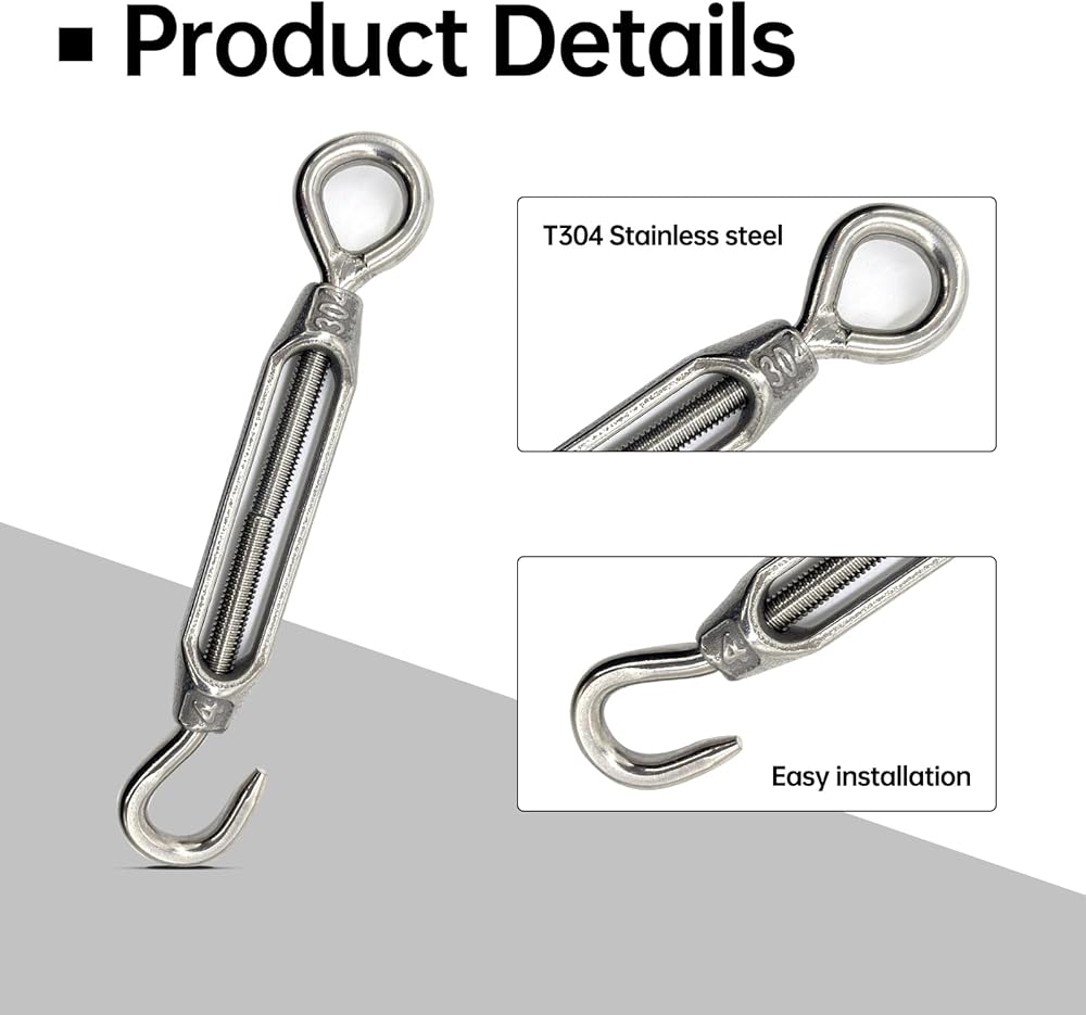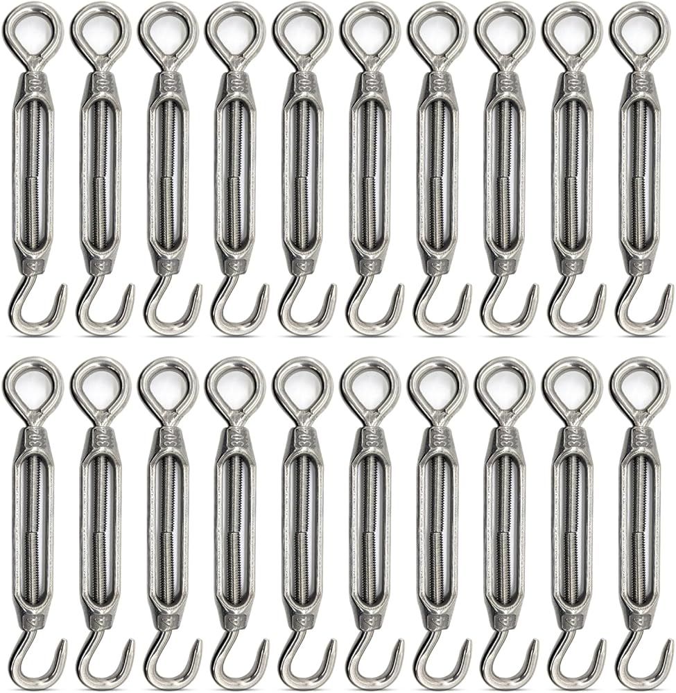 خطاف وعين وصلة ربط المقطورة M4 - يأتي مع 20 قطعة شداد سلك وصلة ربط المقطورة من الفولاذ المقاوم للصدأ 304.