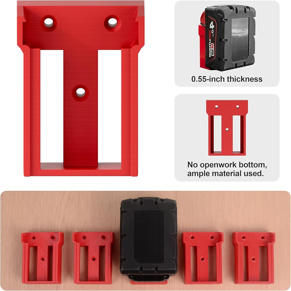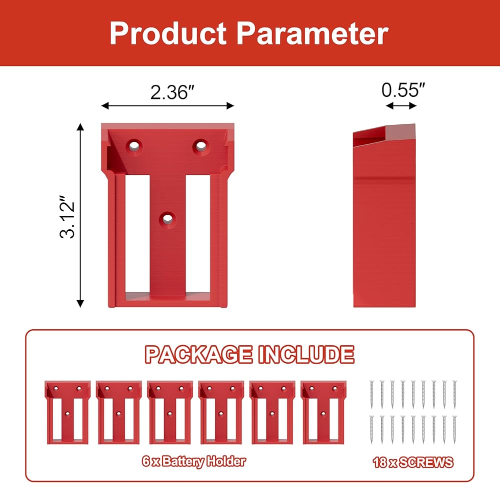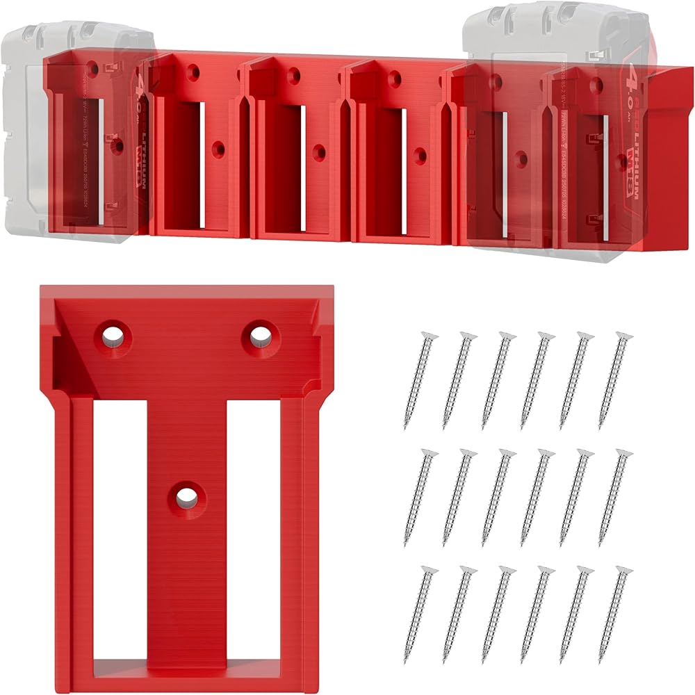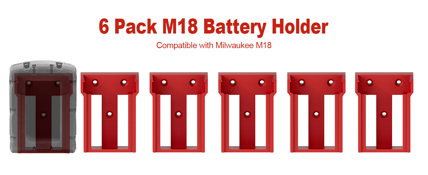 متوافق مع مجموعة حامل بطارية ميلووكي M18 المتوافقة مع بطاريات ميلووكي M18. تتضمن 6 حوامل للبطاريات و18 براغي لتخزين البطارية بالكامل على الحائط.