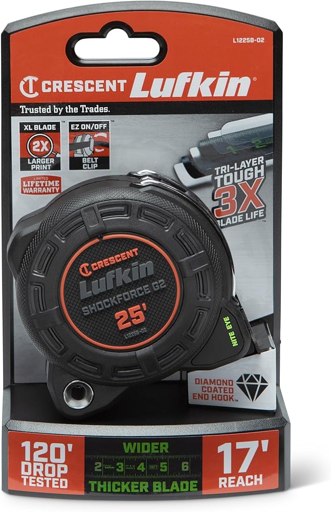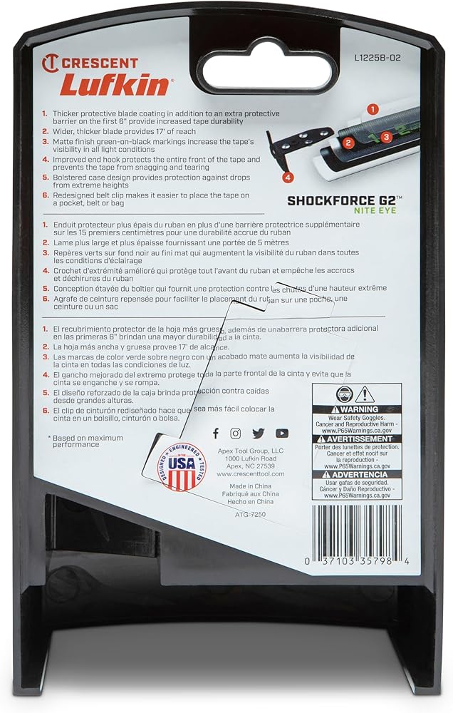 قوة الصدمات، قوة الصدمات، قوة الصدمات، شوك فورس، شوك فورس، شوك فورس، خطاف نهاية مطلي بالماس، شفرة مزدوجة الجوانب، شريط قياس مزدوج الجوانب، شريط طاقة، مدى وصول 17 قدم.