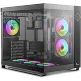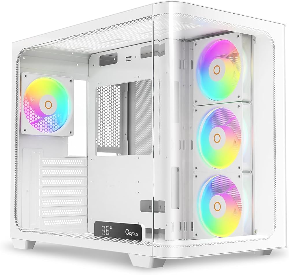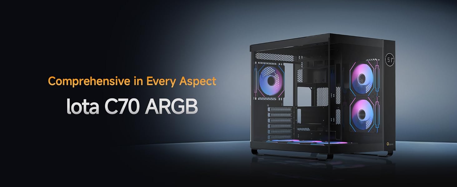 【رؤية بانورامية غامرة】يتميز بزجاج مقسى عالي الشفافية على الوجهين وتصميم خالٍ من الأعمدة، مما يوفر رؤية كاملة للمكونات الداخلية. هيكل معدني بالكامل مع ملمس قوي، ويتميز بلوحة معدنية SPCC مقاس 0.7 مم لتجربة مستخدم قوية بشكل استثنائي.