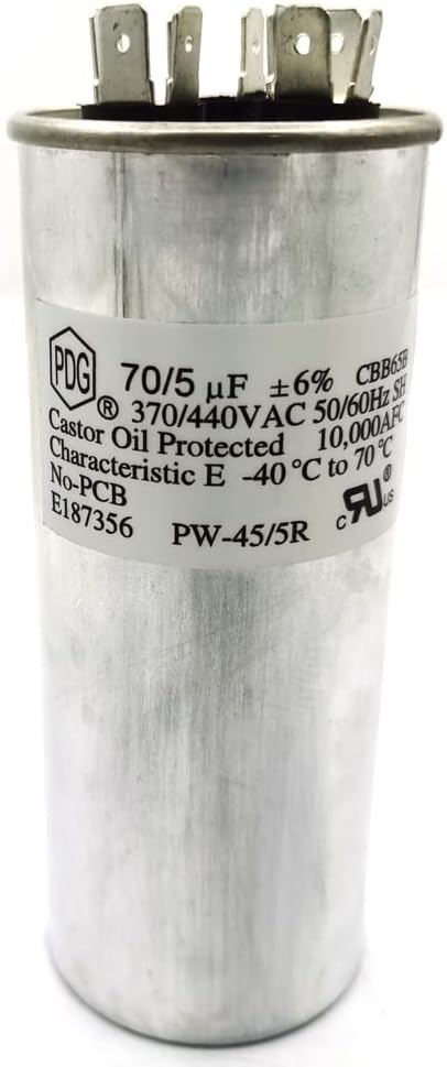 CBB65 70+5 فائق التوهج 70/5MFD ±6% 370 فولت/440 فولت 50/60 هرتز متوافق مع مكيف الهواء ذو المضخة الحرارية أو الباردة المكثف