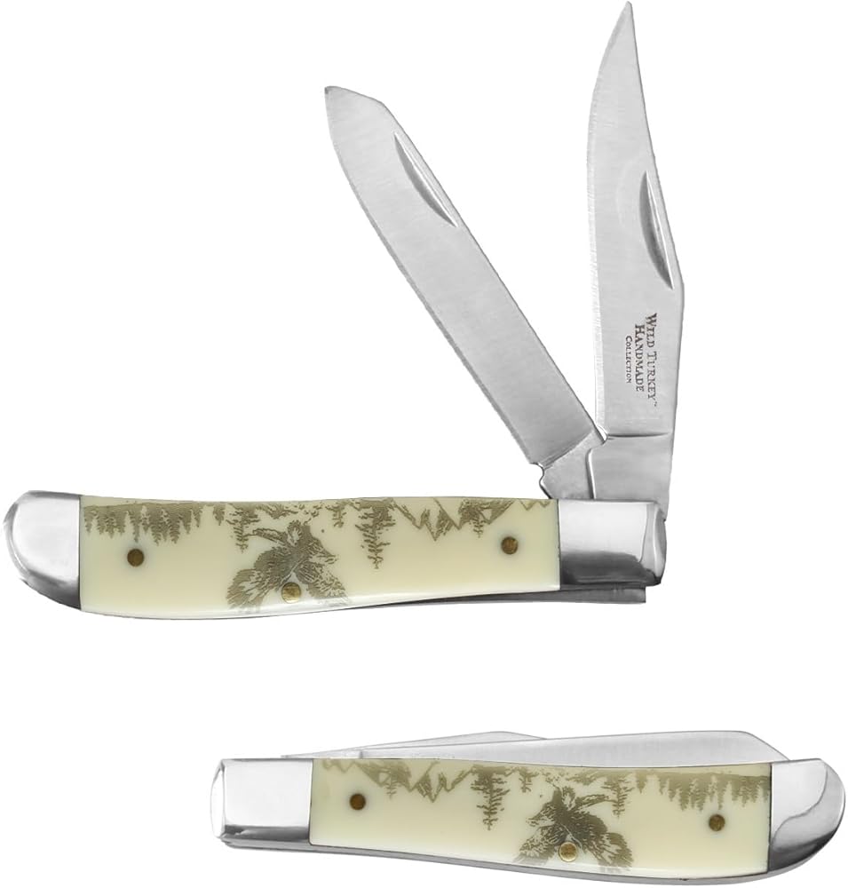 Old Ram Manual folding Gentleman's 2 blade Knife. 4.5" Length of Knife Closed. 3.5" Stainless Steel Blade. Smooth Resin Handle with Brass Bolster.