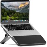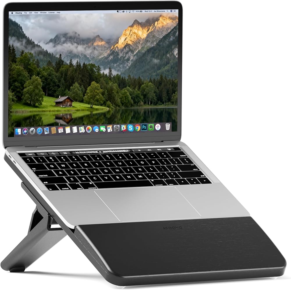 حامل كمبيوتر محمول من الخيزران قابل للتعديل، حامل كمبيوتر محمول، حامل كمبيوتر محمول مريح مع مسند للمعصم، متوافق مع جميع أجهزة الكمبيوتر المحمولة مقاس 9.8-15 بوصة، ماك بوك إير برو/إتش بي/ديل/لينوفو، أسود