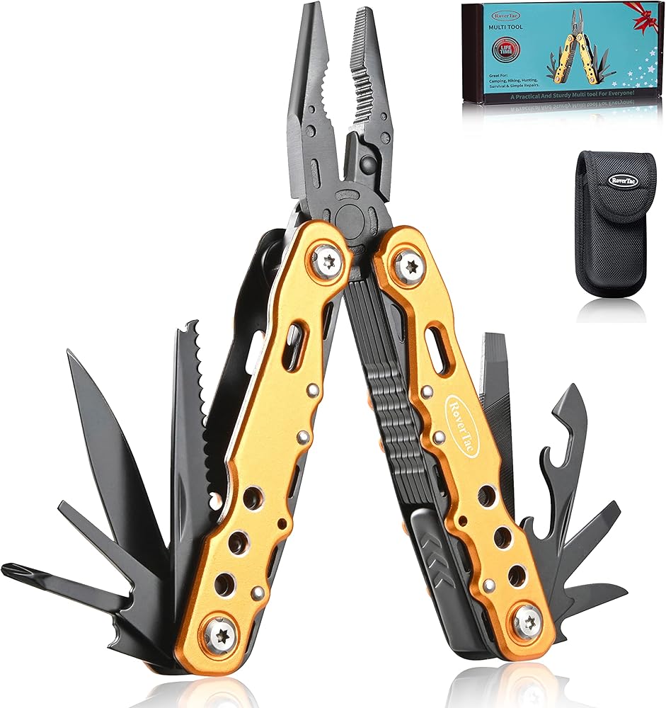 RoverTac كماشة متعددة المهام سكين جيب، 14 في 1 سكين متعدد الأدوات كماشة منشار فتاحة زجاجات قفل أمان غمد من النايلون، معدات التخييم والمشي لمسافات طويلة متعددة الأدوات للتخييم والبقاء على قيد الحياة والمشي لمسافات طويلة DIY، هدايا للرجال والأب in Kuwait