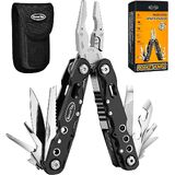 • أداة متعددة 14 في 1: تتميز بكماشة، وسكين، ومنشار، ومفكات براغي، وقاطع أسلاك، وفتاحة زجاجات، وفتاحة علب، وتأتي مع حقيبة متينة من النايلون.