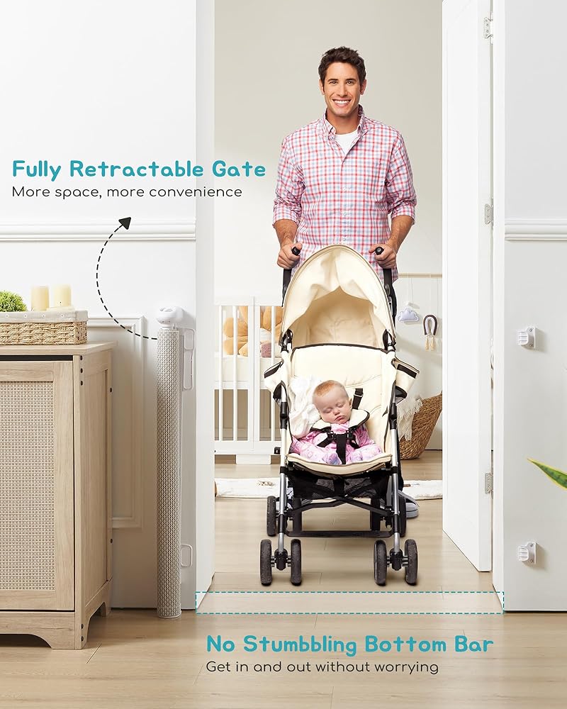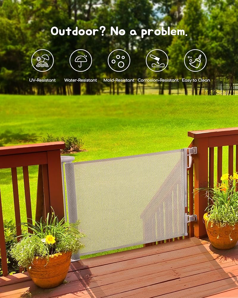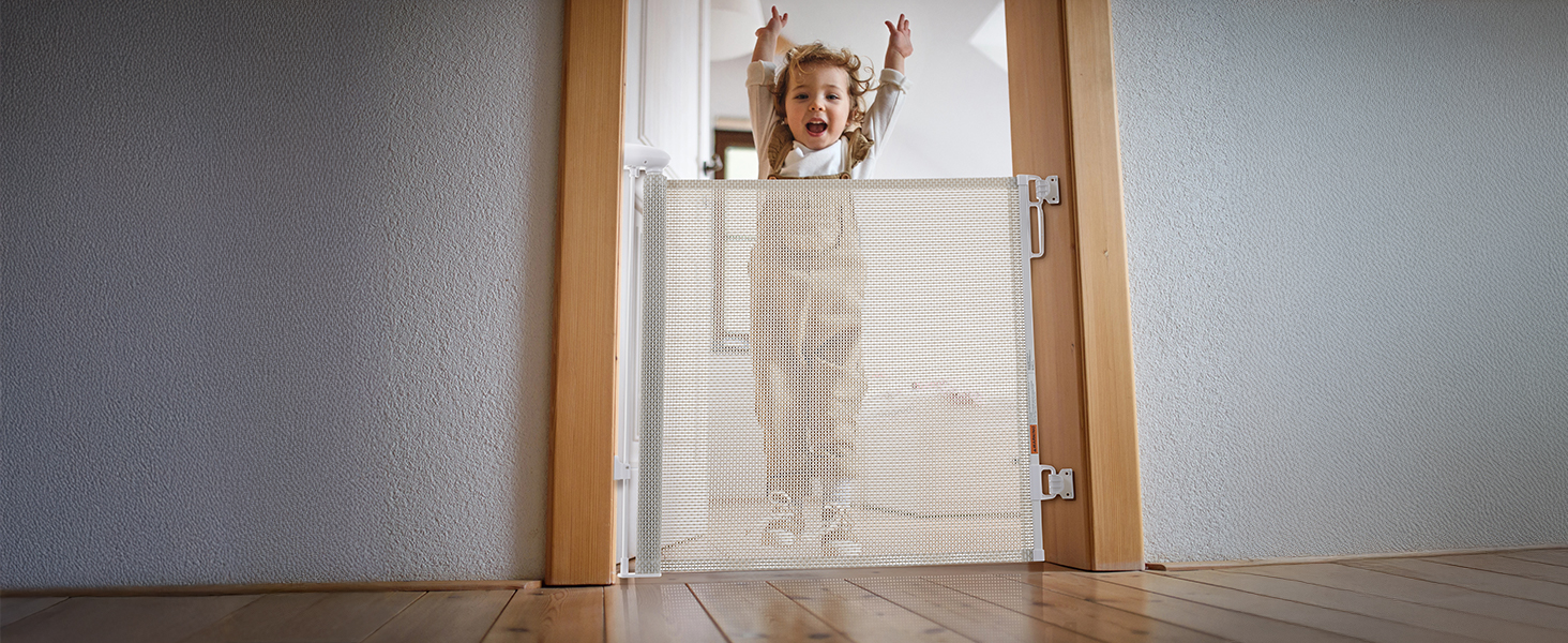 بوابة متعددة الاستخدامات وقابلة للسحب: عندما يتعلق الأمر بتوفير المساحة والمرونة، فإن بوابة الحيوانات الأليفة القابلة للسحب هذه هي ما تحتاجه. يمكن سحب الشبكة بالكامل عند عدم استخدامها. لا يوجد شريط سفلي يعوق طريقك، ويأخذ مساحة صغيرة، مما يسمح لك بإعادة تنظيم مساحة معيشتك بسهولة لفرد جديد من العائلة.