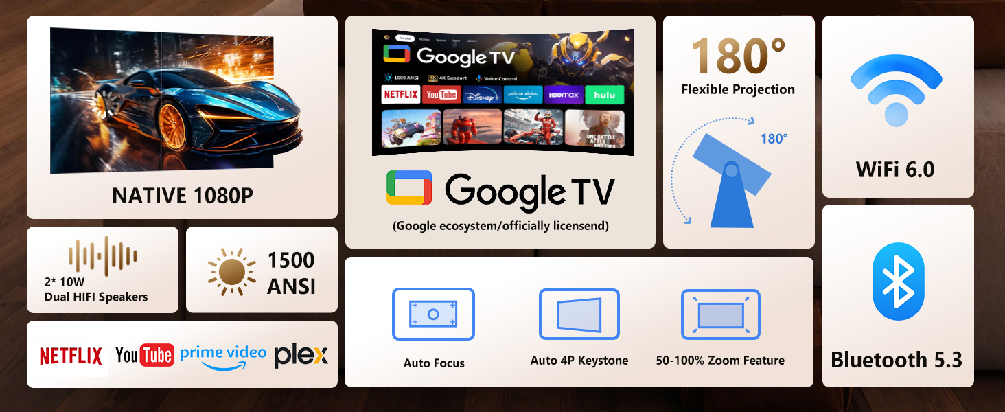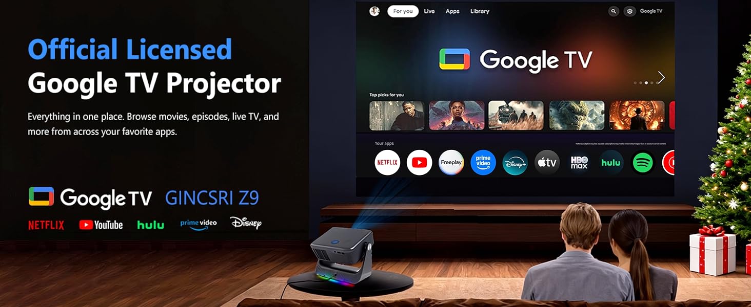 • 【نظام تلفزيون Google المدمج】مع GTV المدمج، قل وداعًا لمشاكل عصا التلفزيون الإضافية. يمكنك الوصول إلى ملايين الأفلام والحلقات والبرامج التلفزيونية المباشرة من Netflix وYouTube وDisney+ وHulu وPrime Video وHBOmax والمزيد. تم دمج جميع المحتويات المفضلة في جهاز عرض تلفزيوني ذكي واحد. 【التحديث التلقائي للتطبيقات】يتم تحديث التطبيقات بصمت أثناء وقت الخمول، مما يضمن أنها جاهزة للاستخدام دائمًا. لا توجد نوافذ منبثقة متطفلة عند فتحها. تقديم تجربة سلسة مقارنة بنظام تشغيل التلفزيون التقليدي.
