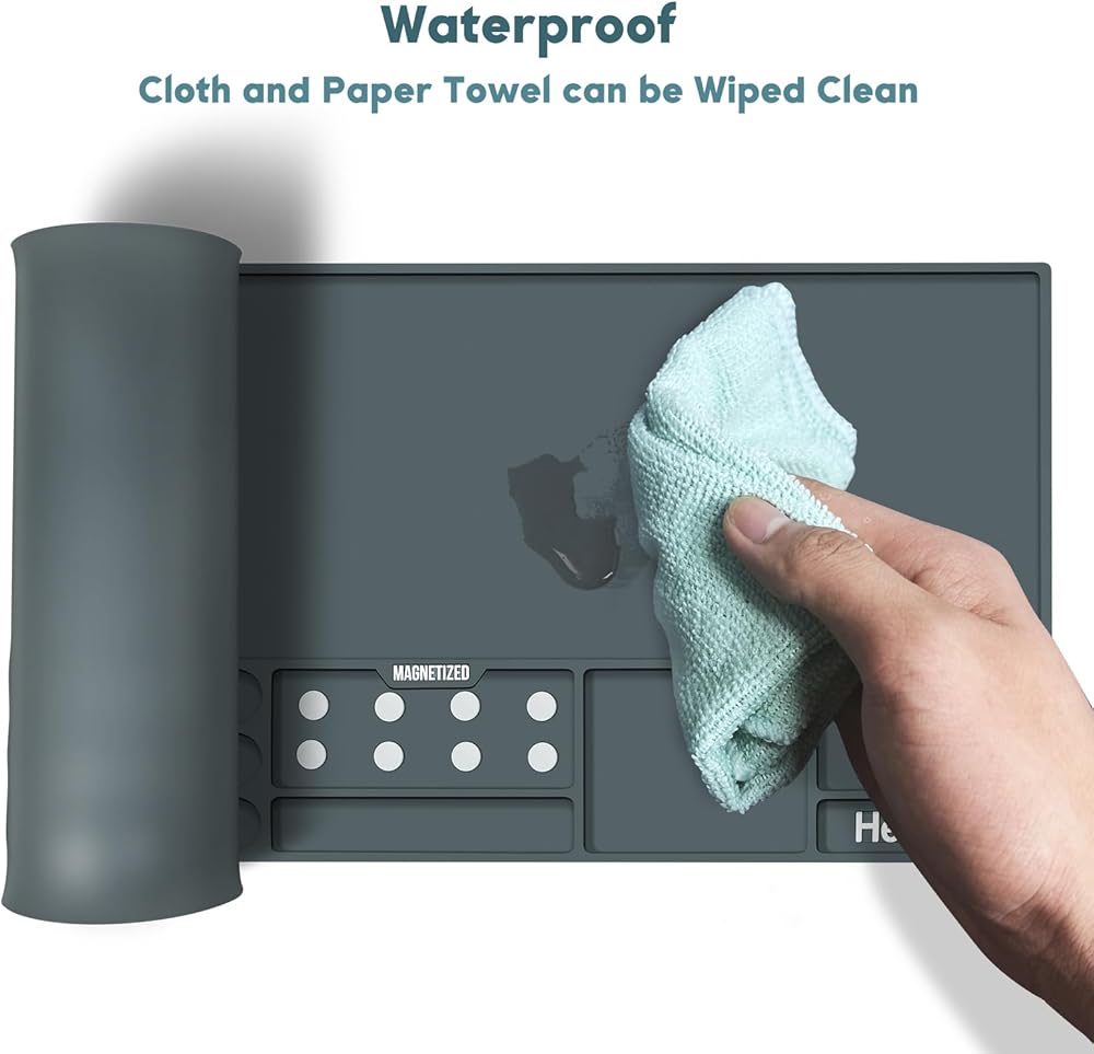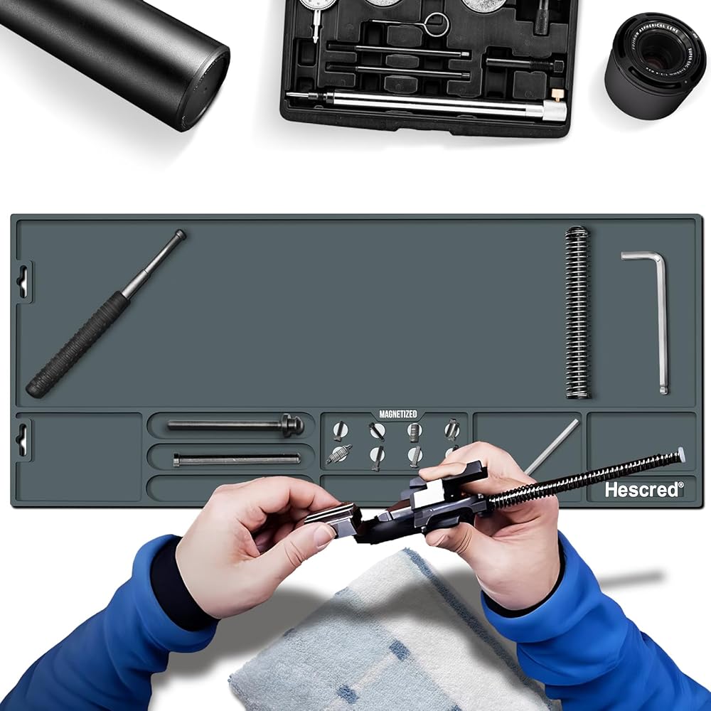 بساط تنظيف المسدس: يحمل النوابض والأجزاء الصغيرة الأخرى ويصنفها بدقة لتسهيل عملك. الجزء المحزز عميق بما يكفي لمنع الزيت والأجزاء من التناثر.