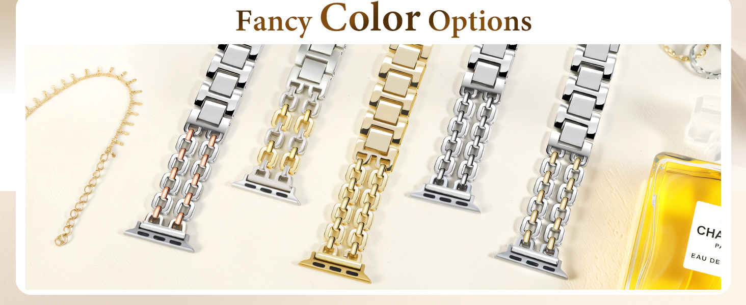 • تصميم أنيق بسلسلة مزدوجة: تتميز بتصميم فريد من نوعه مستوحى من مشبك الورق، هذه الأساور الأنيقة لساعة Apple Watch تمزج بشكل مثالي بين الموضة العصرية والأناقة الخالدة. يعكس كل رابط مصنوع بدقة لمعانًا فاخرًا، مما يرتقي بأساور ساعتك الأنيقة إلى شكل وملمس ساعة فاخرة