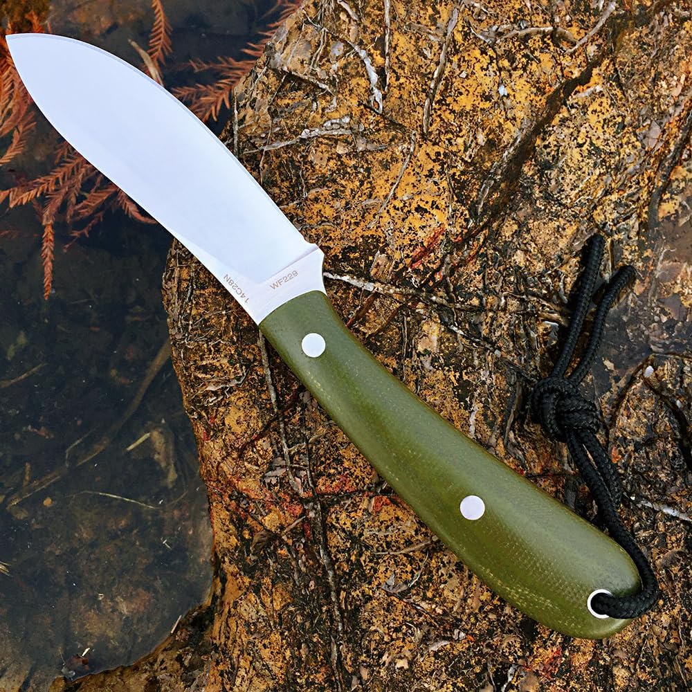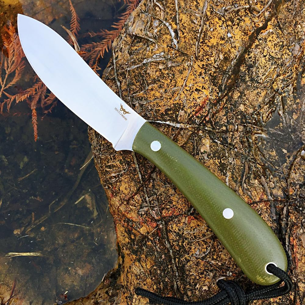 سكين Watchman W229 EDC ذو نصل ثابت 14C28N مقبض ميكارتا من الفولاذ مع أغلفة للأنشطة الخارجية والتخييم (أخضر)