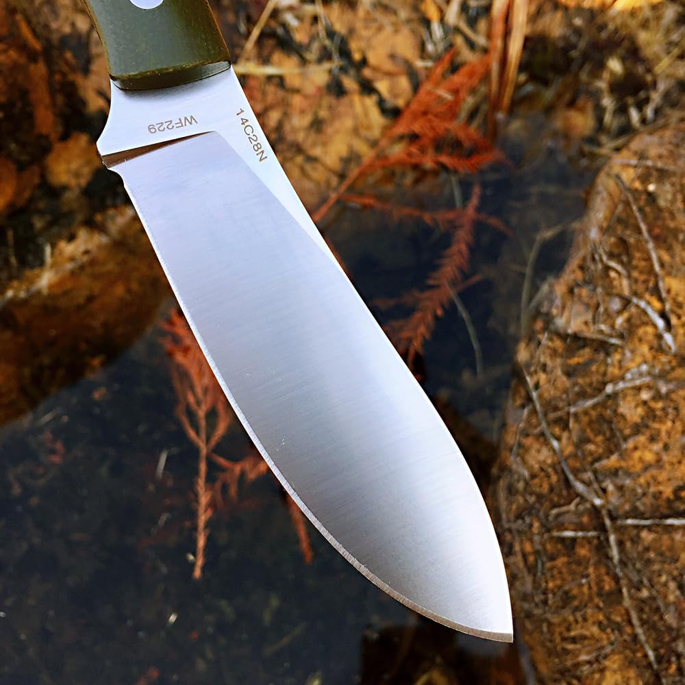 • FIXED BLADE 14C28N STEEL:Extra strong, modified 14C28N steel has a higher material production, is durable when in constant use provides superior abrasion resistance and edge holding capabilities.