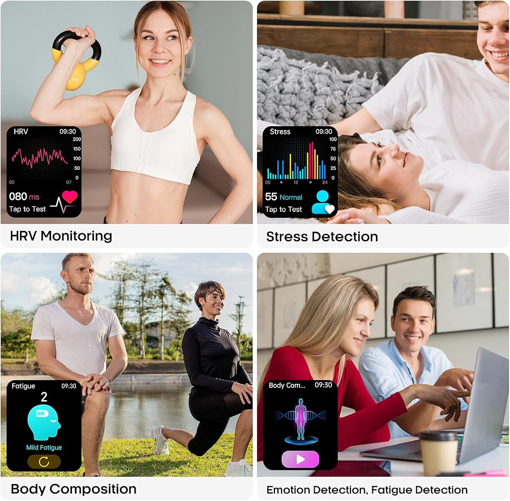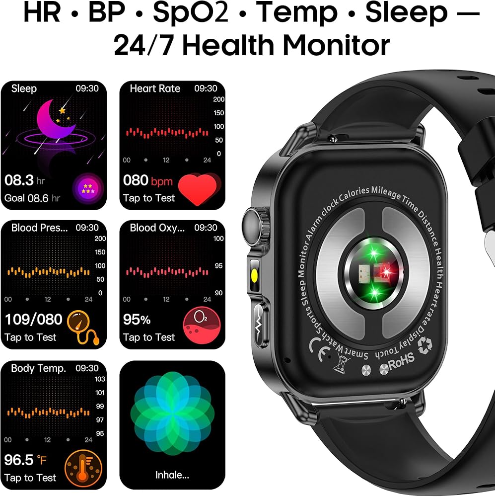 مراقبة الصحة المتقدمة: تجمع هذه الساعة الذكية الصحية بين تتبع معدل ضربات القلب وتقييم التعب والكشف عن المشاعر والتدريب على التنفس ومراقبة الإجهاد. فهو يوفر تتبع SpO₂ وضغط الدم ومعدل ضربات القلب ودرجة الحرارة في الوقت الفعلي على مدار الساعة طوال أيام الأسبوع، بالإضافة إلى تحليل كامل للنوم (العميق والخفيف وحركة العين السريعة). سواء كنت مهتمًا باللياقة البدنية، أو تعمل لساعات طويلة، أو تراقب الاتجاهات الصحية طويلة المدى، فإنه يساعدك على فهم جسمك بشكل أكثر وضوحًا.