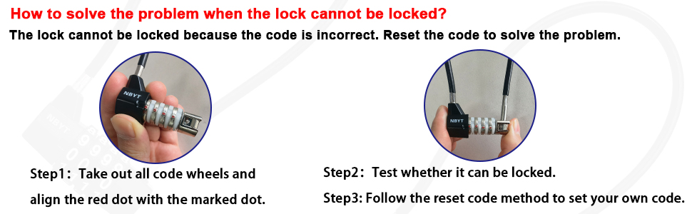 مواد عالية الجودة: جسم قفل من سبائك الزنك، وحبل سلكي فولاذي سميك وغطاء مطاطي