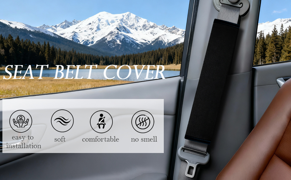ناعمة وغير كاشطة: سطح وسادة حزام الأمان لدينا مغطى بقطيفة ناعمة لمنع الاحتكاك بالجلد. فهو يلتف بشكل آمن حول حزام الأمان للحصول على تجربة قيادة أفضل وأكثر أمانًا