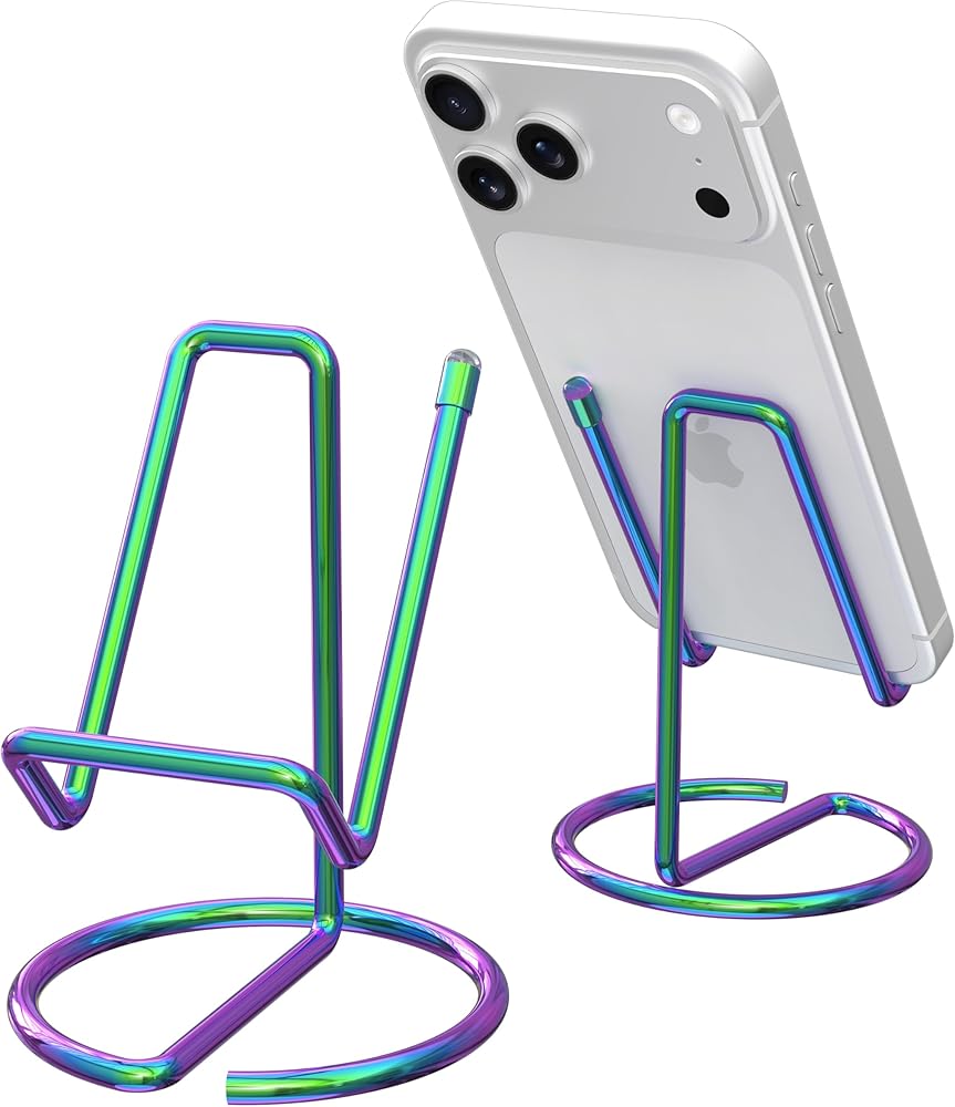 حامل هاتف خلوي معدني للمكتب، حامل هاتف لطيف من قطعة واحدة، قاعدة عرض ثابتة لسطح المكتب لهواتف iPhone وiPad وSamsung والأجهزة اللوحية وجميع الهواتف المحمولة، ملون