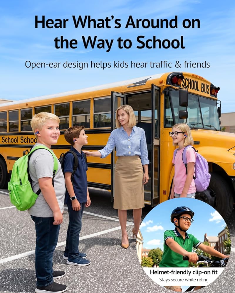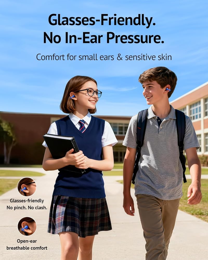 وعي بالأذن المفتوحة، بدون ضغط - توضع سماعات الأذن ذات المشبك المفتوح هذه خارج الأذن مباشرةً - بدون إغلاق أو ضغط - حتى يتمكن الأطفال من الاستمتاع بالصوت مع الاستمرار في سماع الأشخاص والإشارات من حولهم. يساعد المشبك المرن على البقاء في مكانه بشكل مريح، مما يخفف الضغط على الأذنين التي لا تحب البراعم الموجودة داخل الأذن.