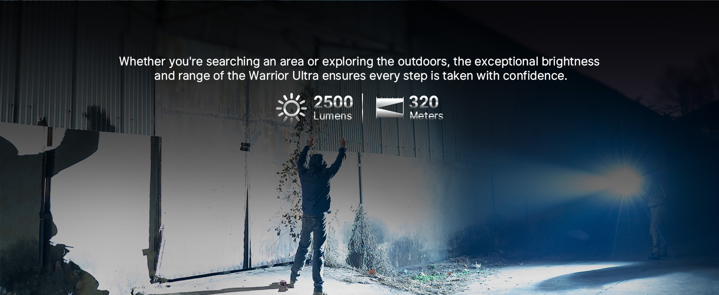 [أداء عالي] مع خرج قوي يبلغ 2500 لومن و26000 شمعة على وضع توربو، يضيء المصباح اليدوي عالي التجويف مسافات تصل إلى 320 مترًا