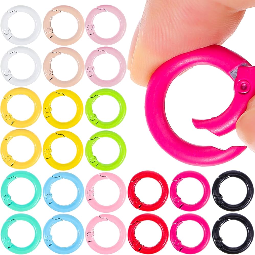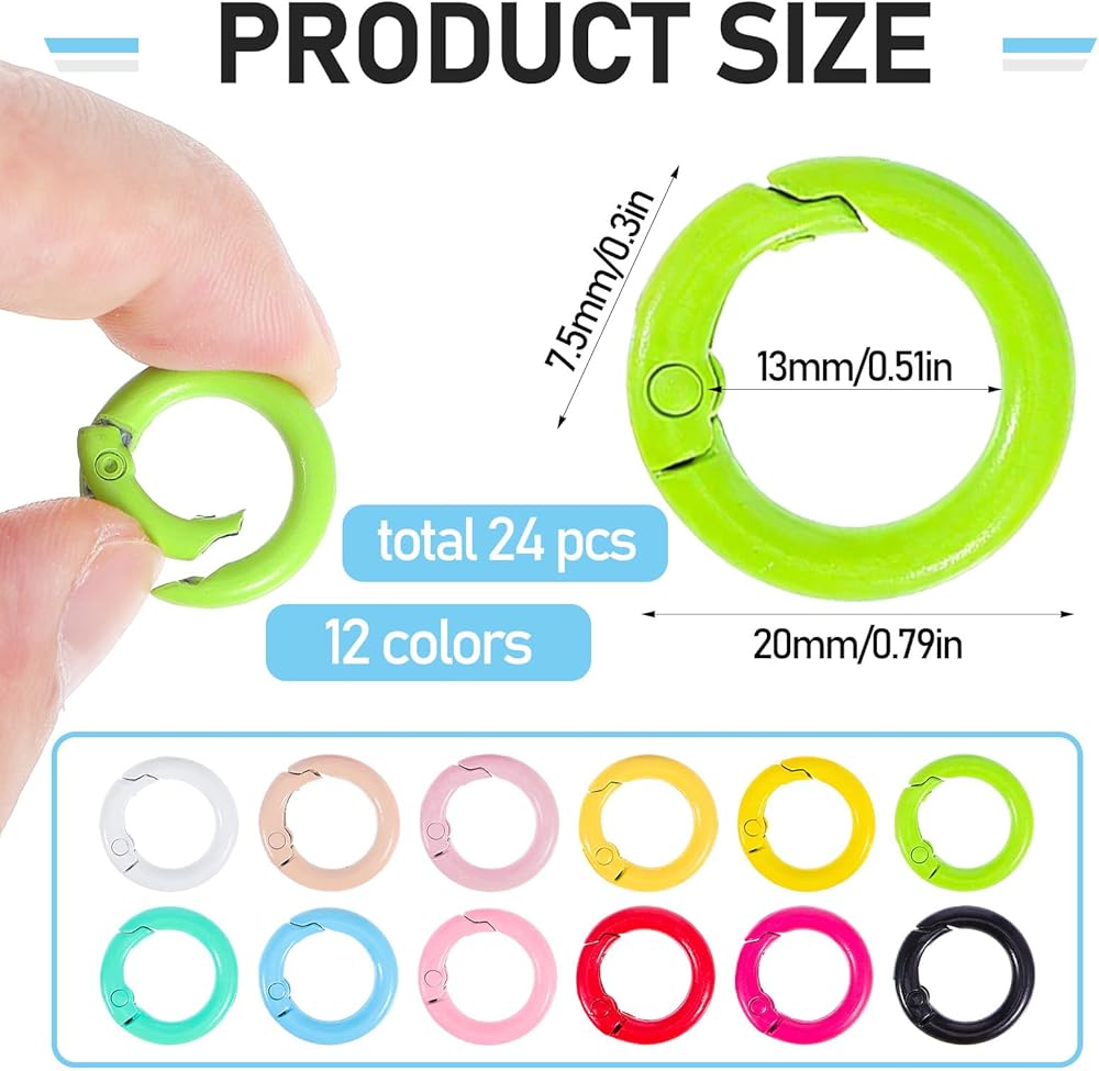 24 قطعة مشبك حلقي زنبركي ملون على شكل حرف O لسلاسل المفاتيح حلقات مفاتيح معدنية دائرية مشبك زنبركي مفتاح مشبك سلسلة مفاتيح لحقيبة الحرف اليدوية (12 لونًا)