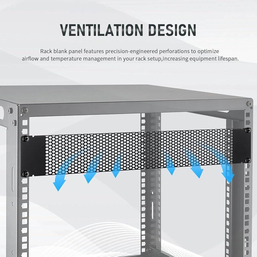 تصميم التهوية: تتميز اللوحة الفارغة ذات الرف 1u بثقوب مصممة بدقة لتحسين تدفق الهواء وإدارة درجة الحرارة في إعداد الرف الخاص بك.