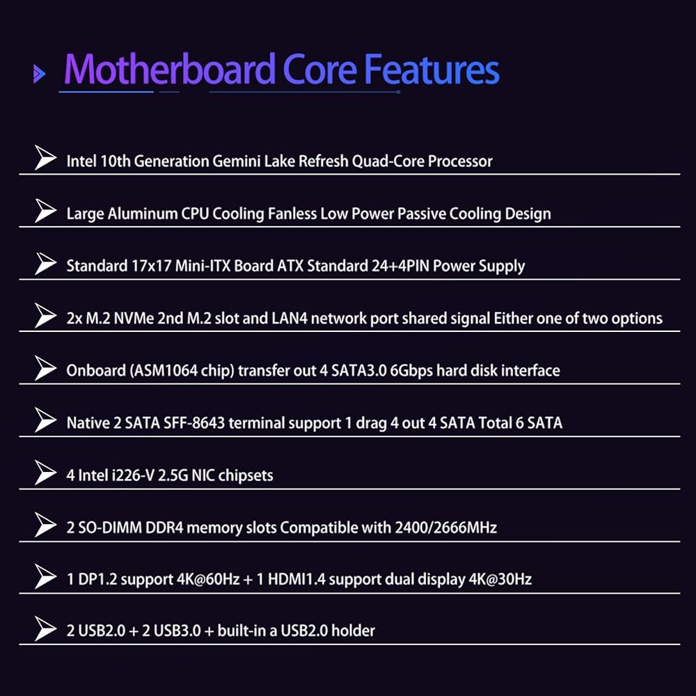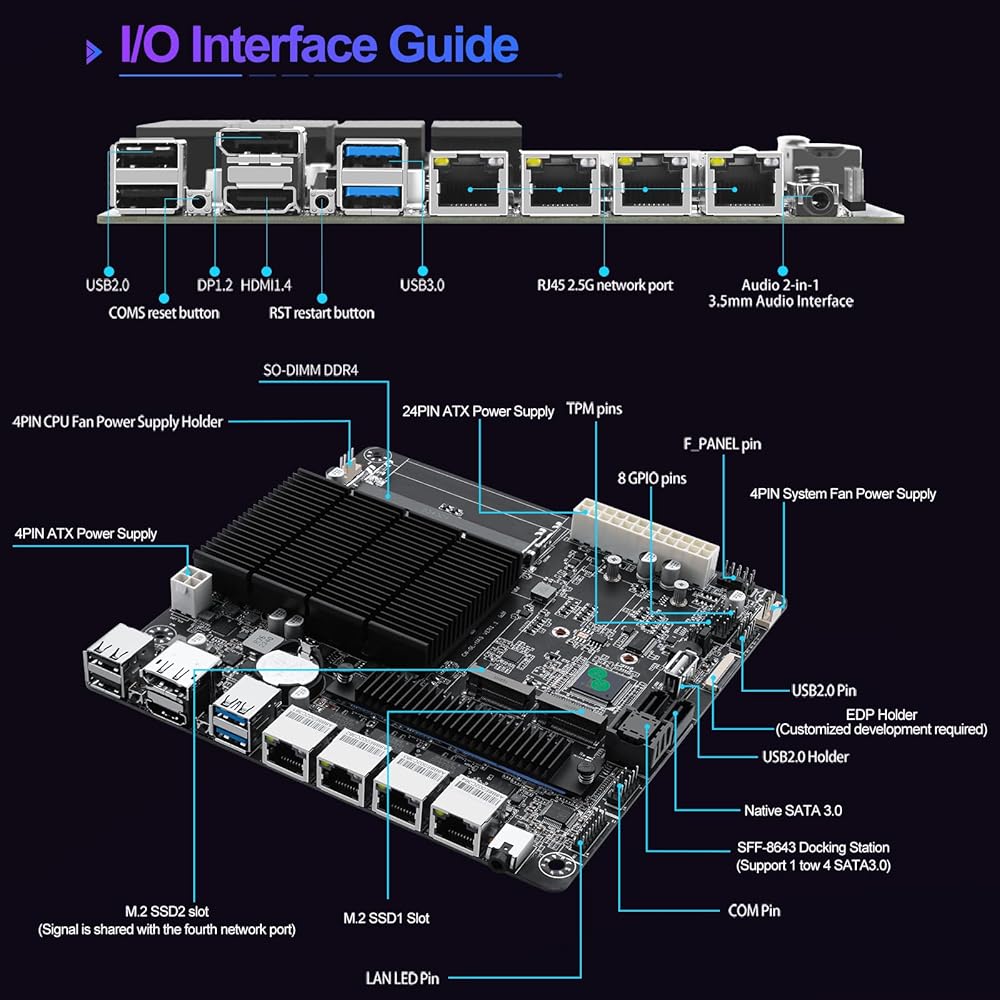 Smooth Networking: This NAS motherboard has 4* i226-v 2.5GbE network ports to deliver a secure, stable and fast network connection for professional network security firewall appliance and multimedia use