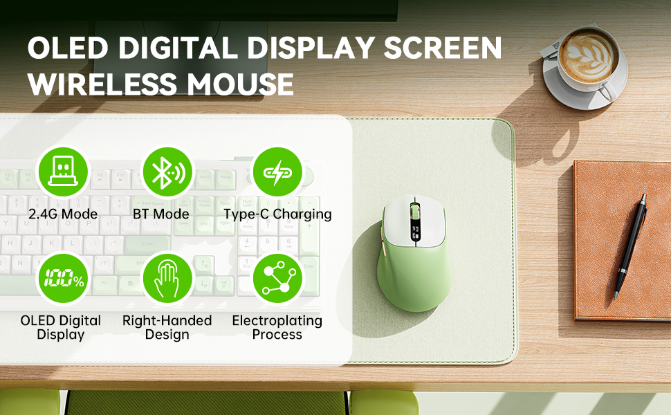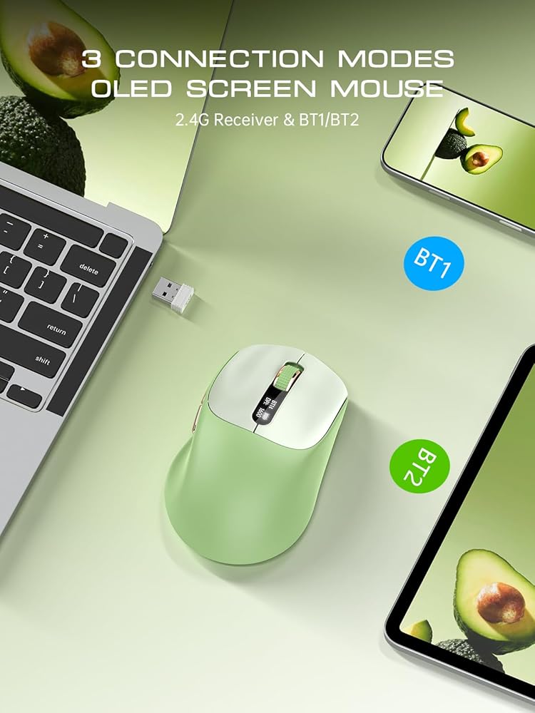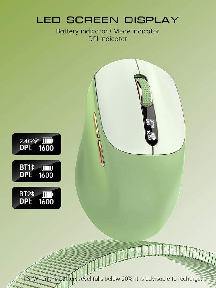 [ماوس بلوتوث ذكي مع شاشة عرض حالة LED] تعرض شاشة LED المدمجة نسبة البطارية ووضع الاتصال في الوقت الفعلي. لا داعي للتخمين بعد الآن، فكل شيء في متناول يدك.