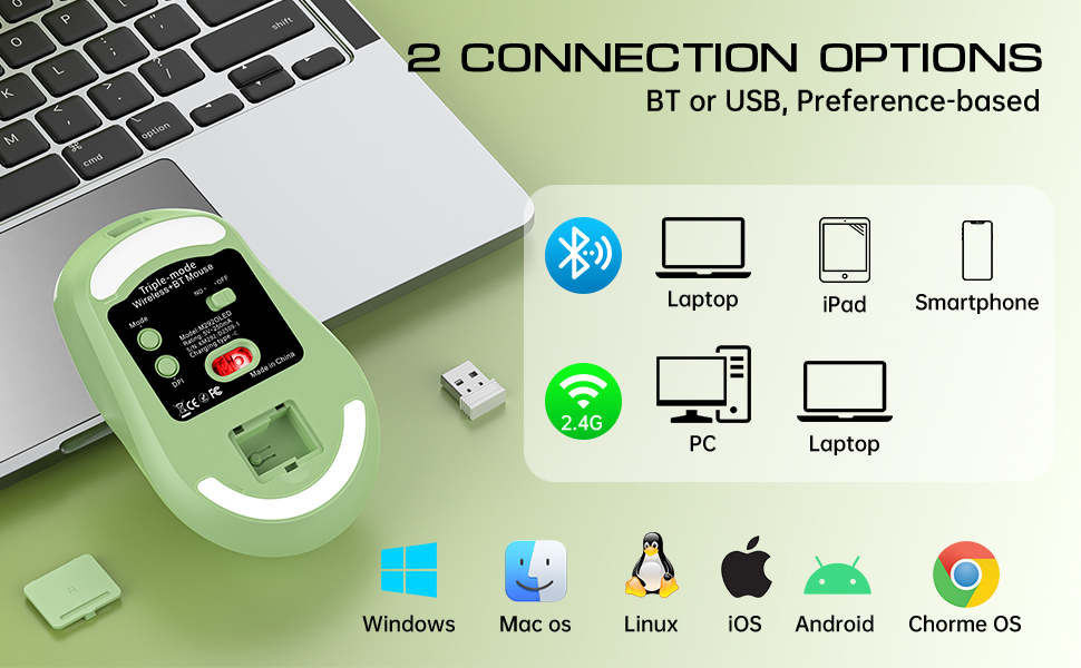 التوافق: يتوافق ماوس السفر الصامت M292 مع أنظمة تشغيل متعددة، بما في ذلك أجهزة Chromebook وSurface Pros وMacBooks وأجهزة الكمبيوتر المحمولة وأجهزة الكمبيوتر الشخصية وأجهزة الكمبيوتر المكتبية. يدعم وضع البلوتوث أنظمة التشغيل Windows/Android/Mac OS/Linux وChromeOS وAndroid/iPadOS 13 أو الإصدارات الأحدث؛ يدعم وضع 2.4 جيجا هرتز أي جهاز مزود بمنفذ USB، مما يجعل الاقتران مريحًا للغاية. ملاحظة: يوجد جهاز استقبال USB في الجزء السفلي من الماوس.