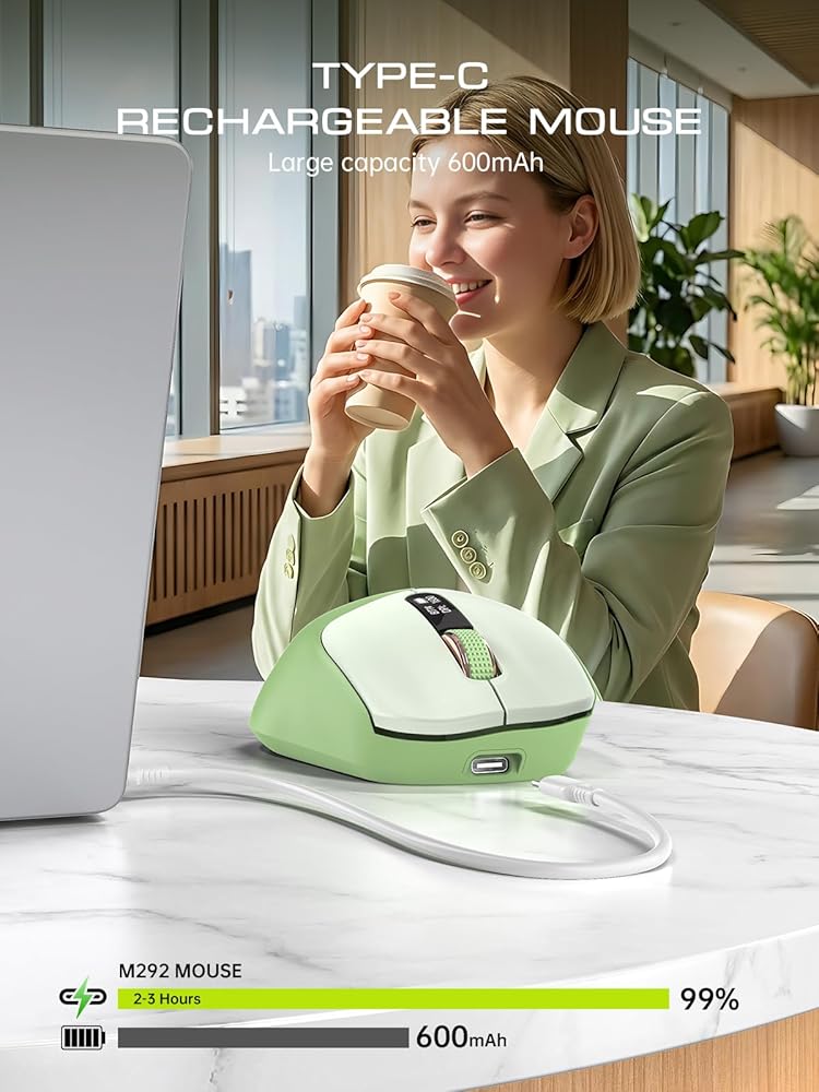 【ماوس قابل لإعادة الشحن/نوم تلقائي】بطارية مدمجة ذات سعة كبيرة 600 مللي أمبير في الساعة، ومنفذ شحن من النوع C. قل وداعًا لبطاريات AA والشحن الصديق للبيئة وتقليل النفايات الإلكترونية. سيدخل تلقائيًا في وضع السكون بعد 5 دقائق من عدم النشاط.