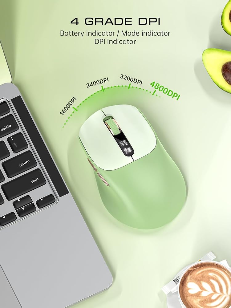 نقرة صامتة واستجابة عالية: مستويات DPI قابلة للتعديل بين 1600 و2400 و3200 و4800 لتلبية الاحتياجات المختلفة. النقر الهادئ يسمح ببيئة عمل هادئة.