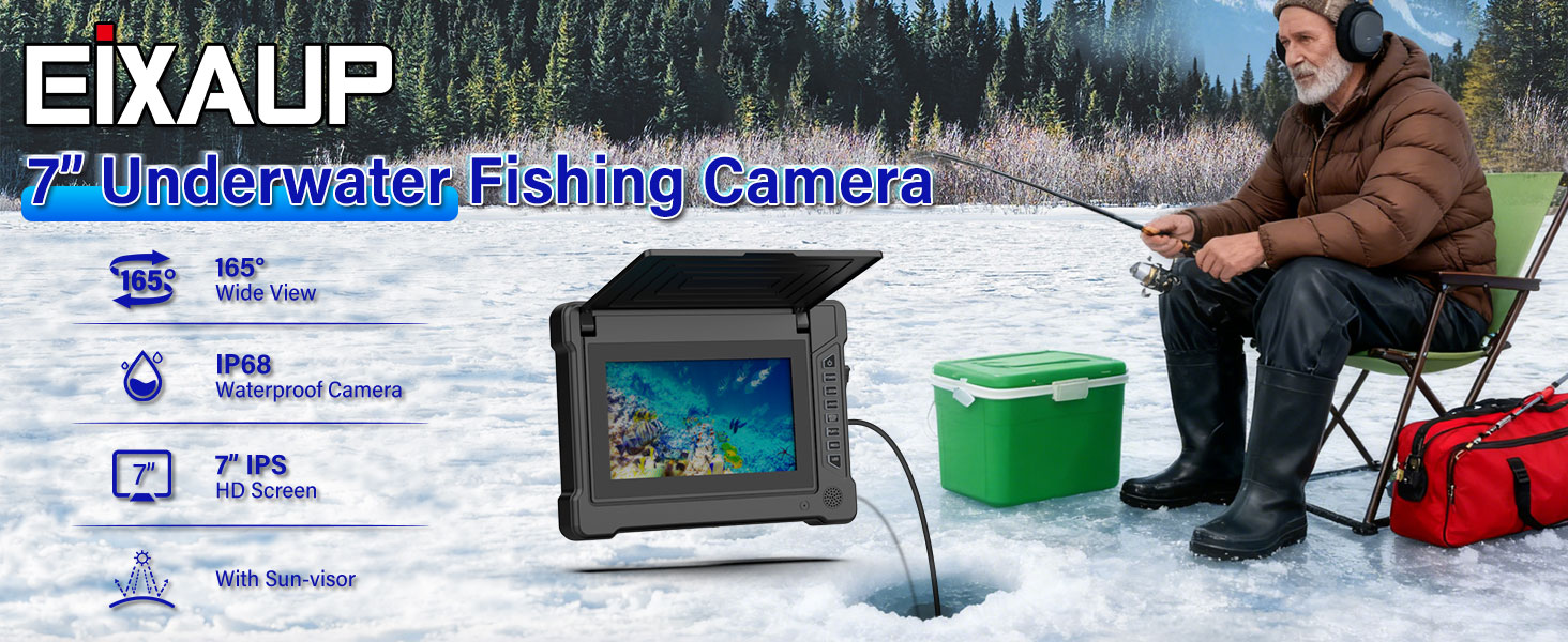 [كاميرا احترافية لصيد الأسماك تحت الماء]: توفر شاشة EIXAUP مقاس 7 بوصات IPS صورًا نابضة بالحياة بدقة 1200TVL وزاوية عرض 165 درجة. مثالية للاستخدام كمكتشف محمول للأسماك، فهي تساعدك على اكتشاف الأسماك بسهولة في الظروف الساطعة أثناء صيد الأسماك على الجليد أو صيد الأسماك في البحيرة أو الاستكشاف البحري. بالإضافة إلى ذلك، فإن المظلة المدمجة تقطع الوهج، حتى تتمكن من الرؤية بوضوح حتى في الأيام المشمسة والمشرقة.